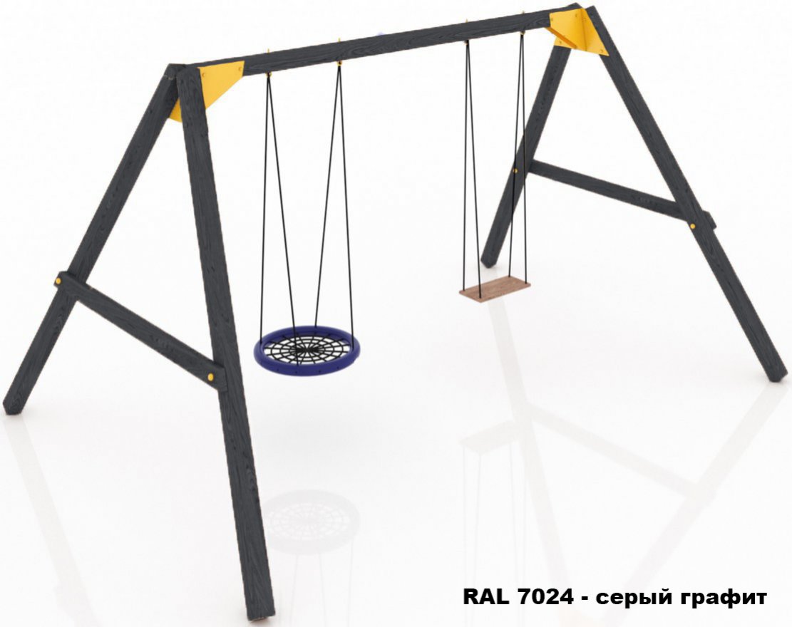 Габариты качелей: 2650 мм х 3900 мм, высота: 2170 мм.