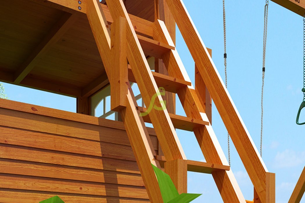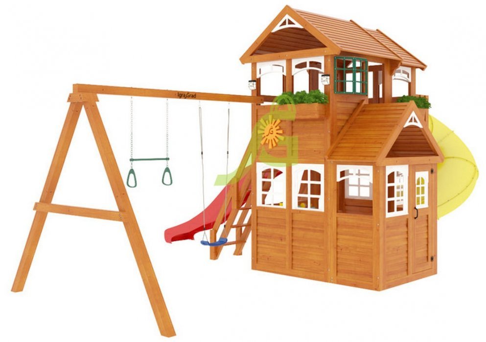Детская игровая площадка «Клубный домик 3 с трубой» представляет собой современную, продуманную, эргономичную конструкцию, разработанную с учётом новейших технологий и многолетнего опыта. Она представляет собой целый комплекс, включающий двухуровневый домик, трёхметровую волновую горку, горку-трубу, лестницу-скалодром, качели, трапецию с кольцами, доску для игры в "Крестики-нолики" и даже канат.