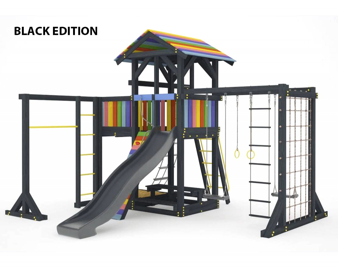 Детская площадка обладает довольно широким функционалом, предназначена для дачи, коттеджа.