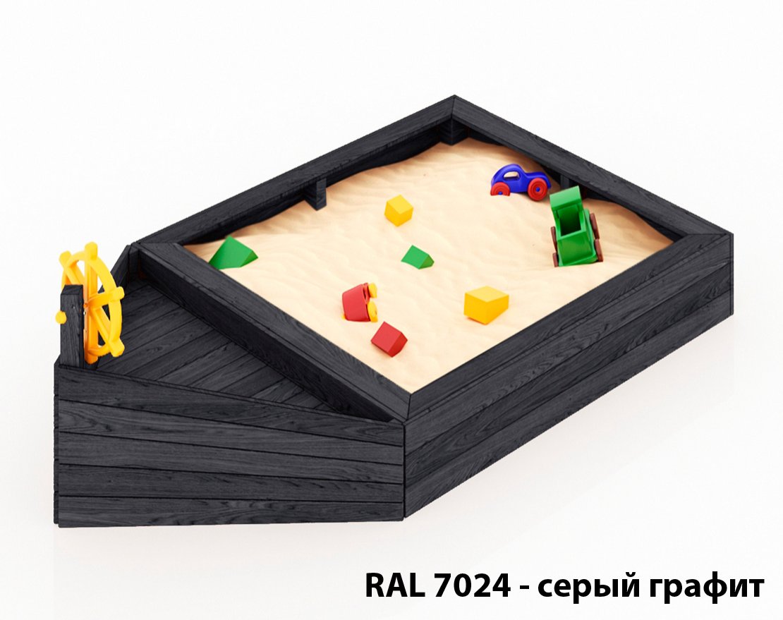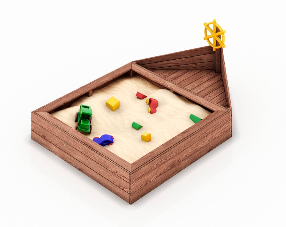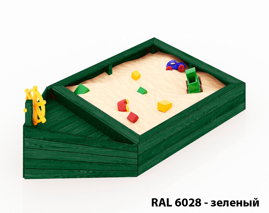 Детская песочница в виде кораблика, удобная, компактная.