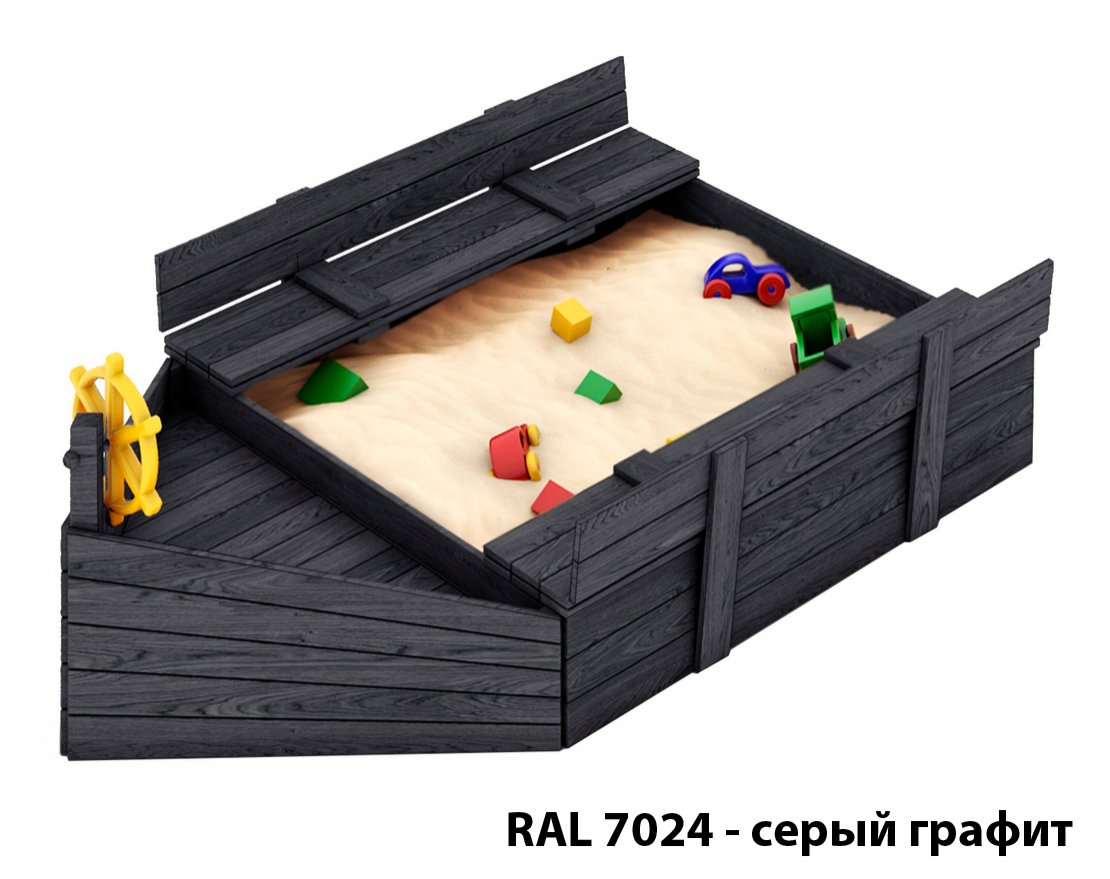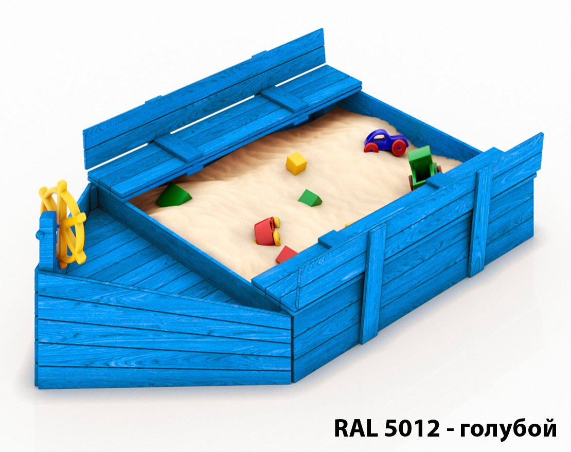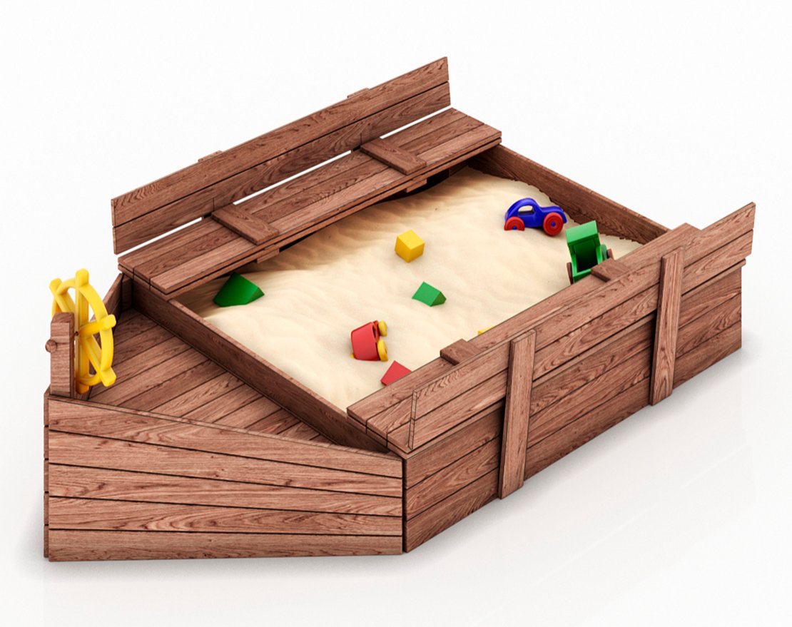 Детская песочница в виде кораблика, удобная, компактная.