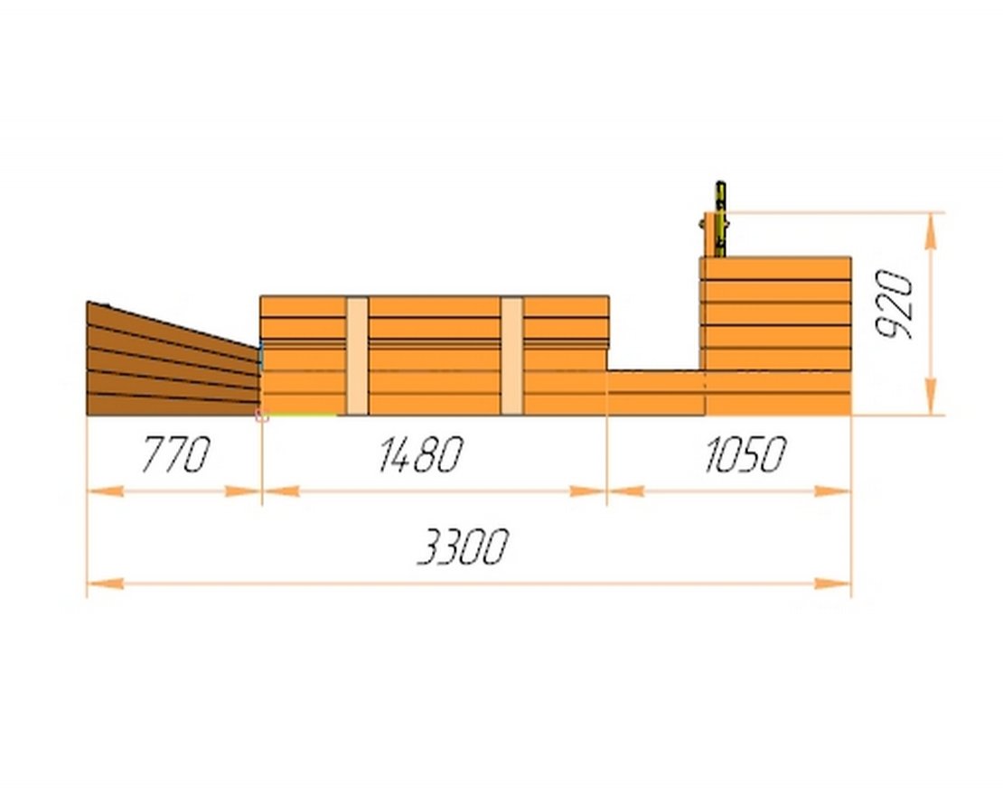 Габариты комплекса: 3300 мм х 1500 мм х 920 мм.
