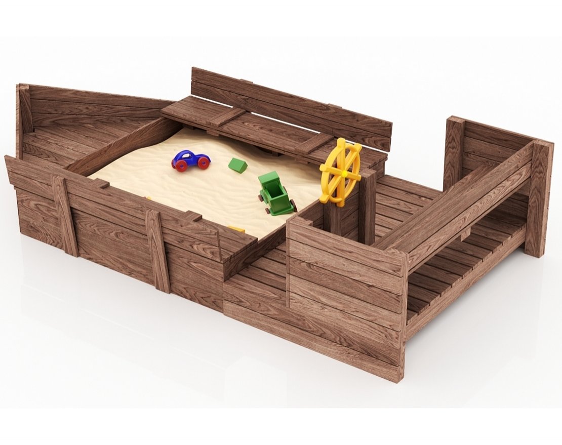 В рабочем разложенном состоянии по бокам песочницы расположены удобные лавочки. После завершения игры песочницу можно легко сложить, превратив боковые лавки в крышу песочницы.