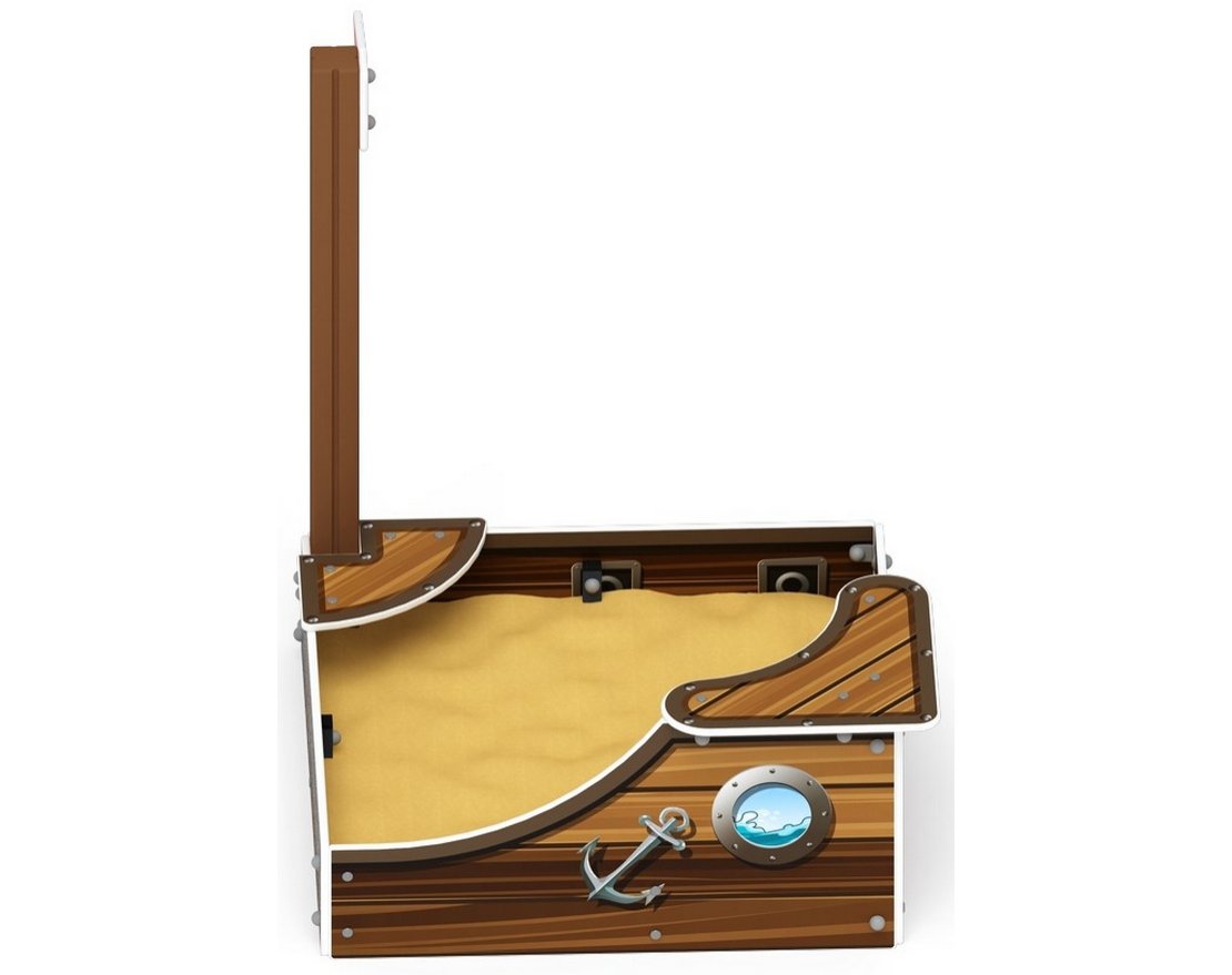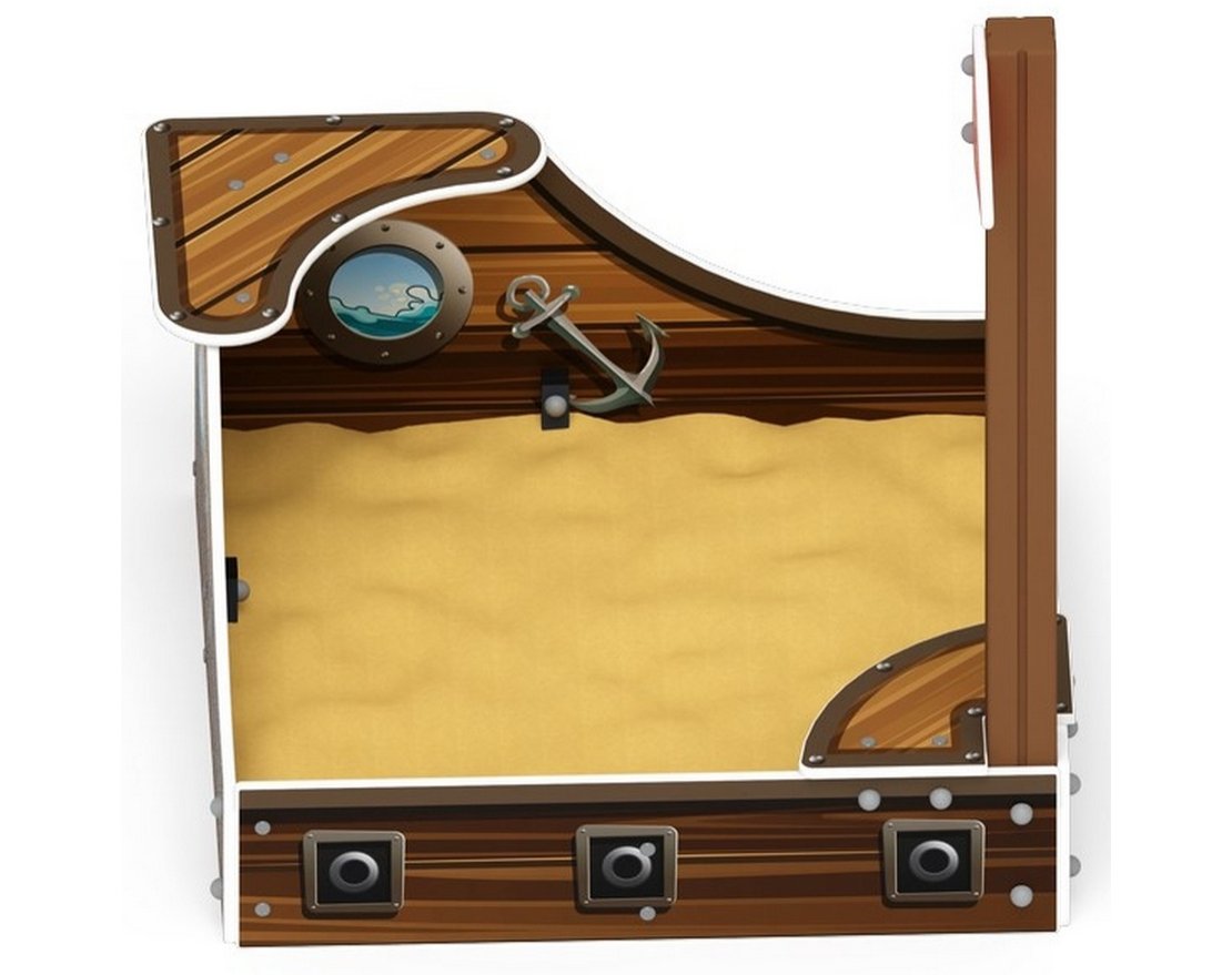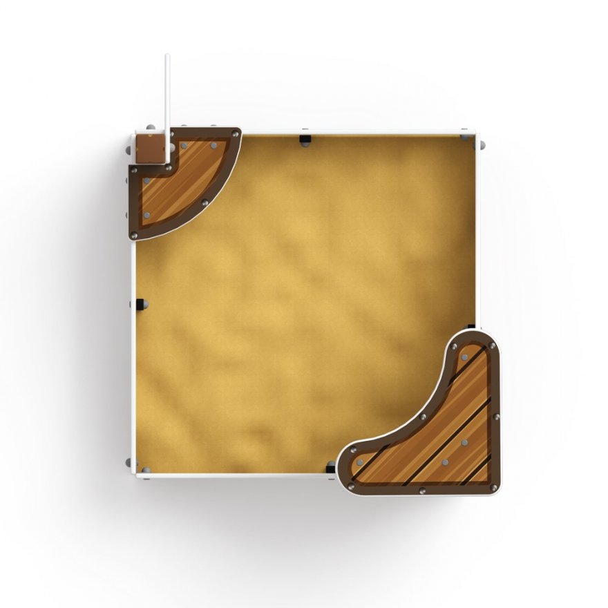 Выполнены из влагостойкой фанеры толщиной не менее 18 мм, кромки фанеры тщательно шлифованы. Борта габаритные размеры 1180х580 мм – 2 шт. и 1180х280 мм – 2 шт. Стилизованы под кораблик,флаг красного цвета 200х380 мм.