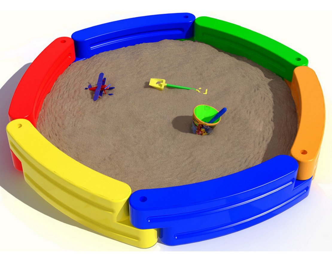 Благодаря удобной форме, кругом песочницы можно бегать и прыгать, не опасаясь зацепиться за угол и ушибиться. Яркие цвета бортика песочницы прекрасно сочетаются с любыми игровыми элементами площадки и лишь освежают, совсем не портя экстерьер каждого двора.