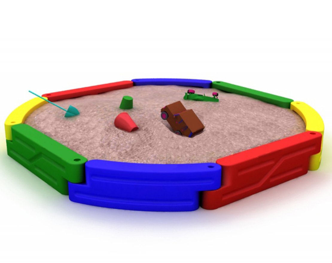 Яркая песочница привлекает взгляд, её бортики удобны для сидения и размещения результатов песчаного творчества. Многоугольная песочница занимает совсем немного места, но позволяет одновременно играть большому количеству детей. Высокое качество материалов гарантирует долгий срок службы песочницы.