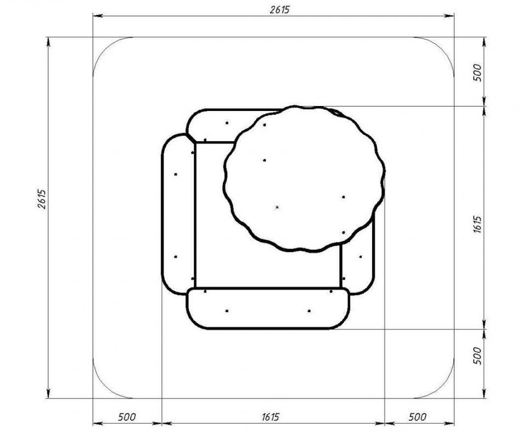 Выполнен из влагостойкой фанеры толщиной не менее 18 мм, кромки фанеры тщательно шлифованы, окрашен с нанесением рисунка (Цветок). Размер 1180х1180.