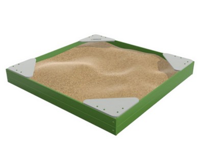 Борта песочницы изготовлены из влагостойкой фанеры толщиной 24 мм. Каркас выполнен из стального уголка 40х40 мм, покрытый порошковой краской. Деревянные детали должны быть тщательно отшлифованы, загрунтованы и окрашены профессиональными двухкомпонентными красками в заводских условиях.