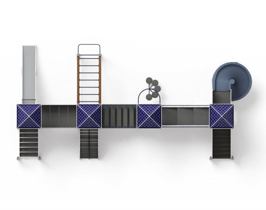 Скалолаз состоит из щита с прорезями из влагостойкой фанеры толщиной 18 мм размером 1000х800 мм, окрашенного с помощью принта.