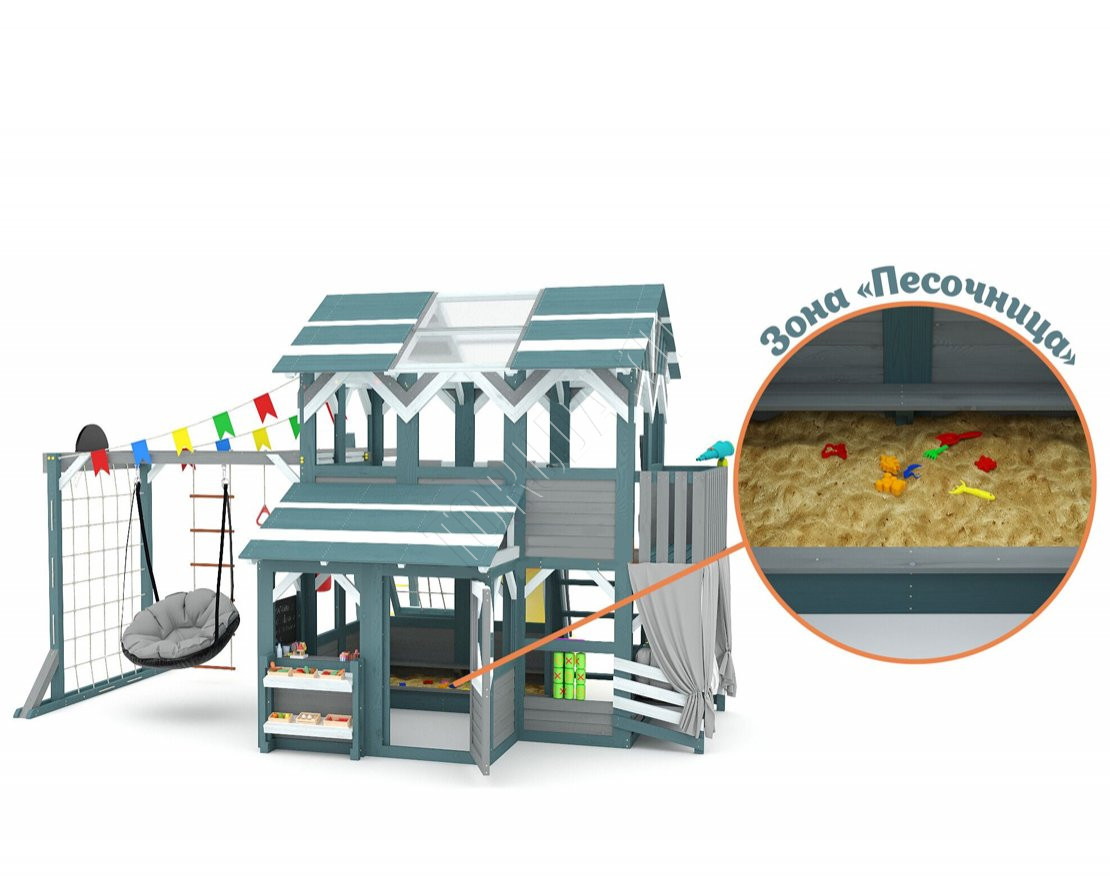 - Зона «Павильон» - увеличенная внутренняя площадь для комфортной игры нескольких детей одновременно.
