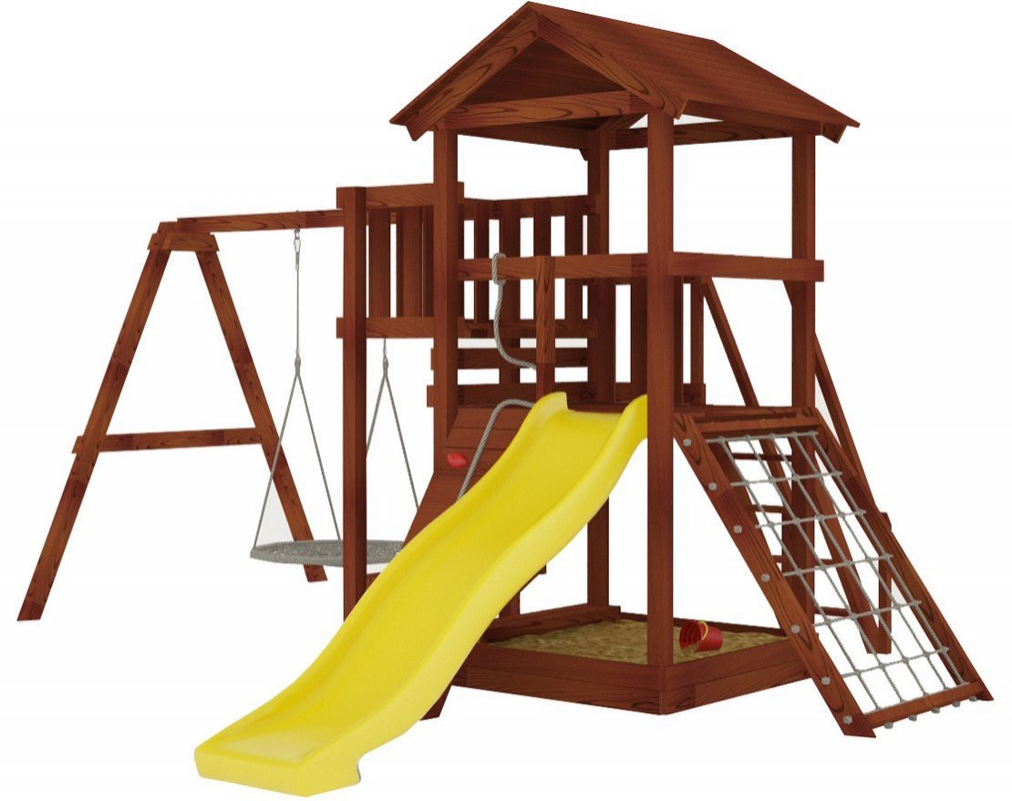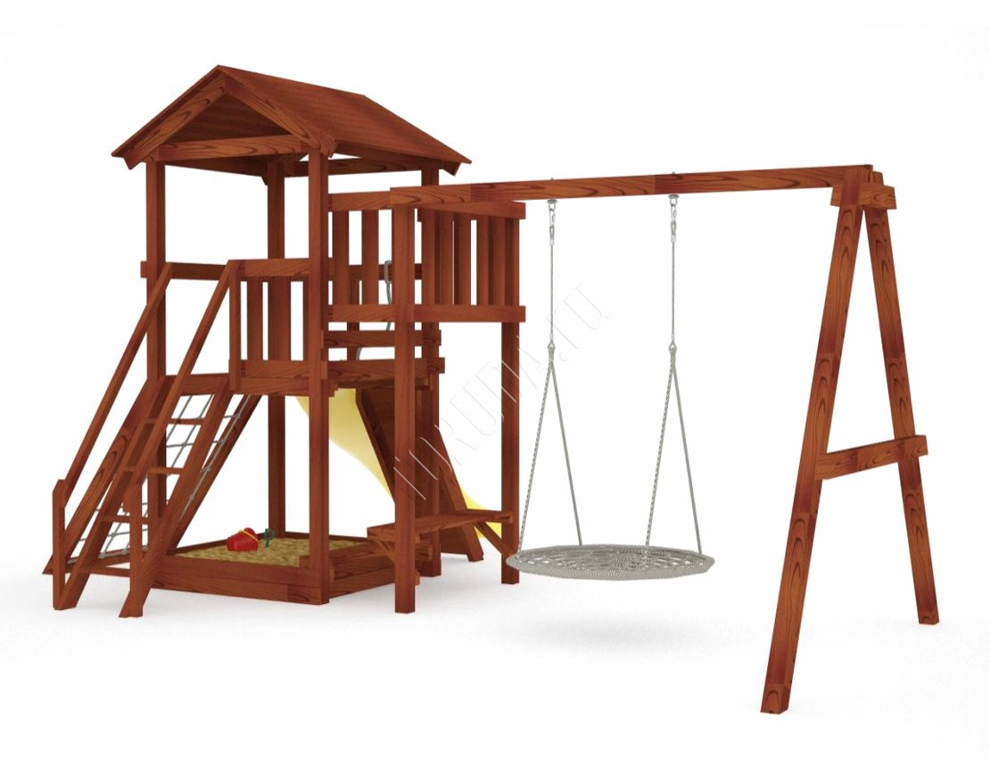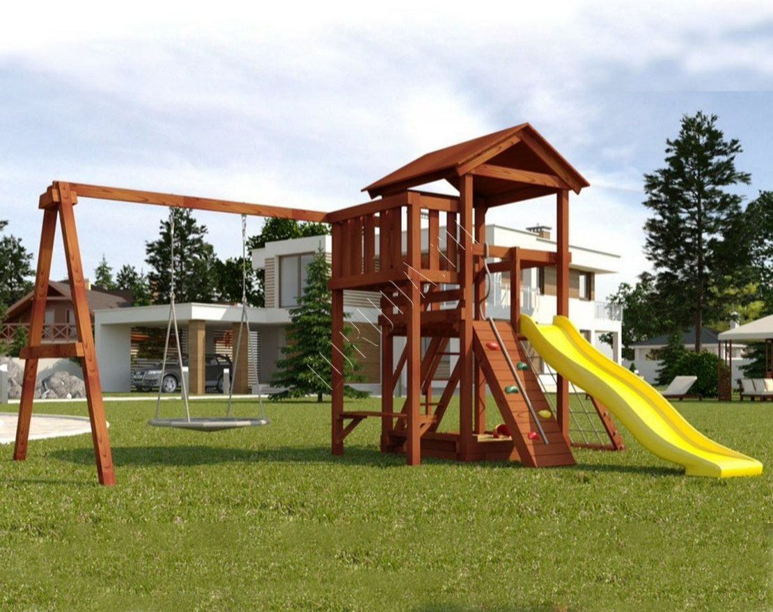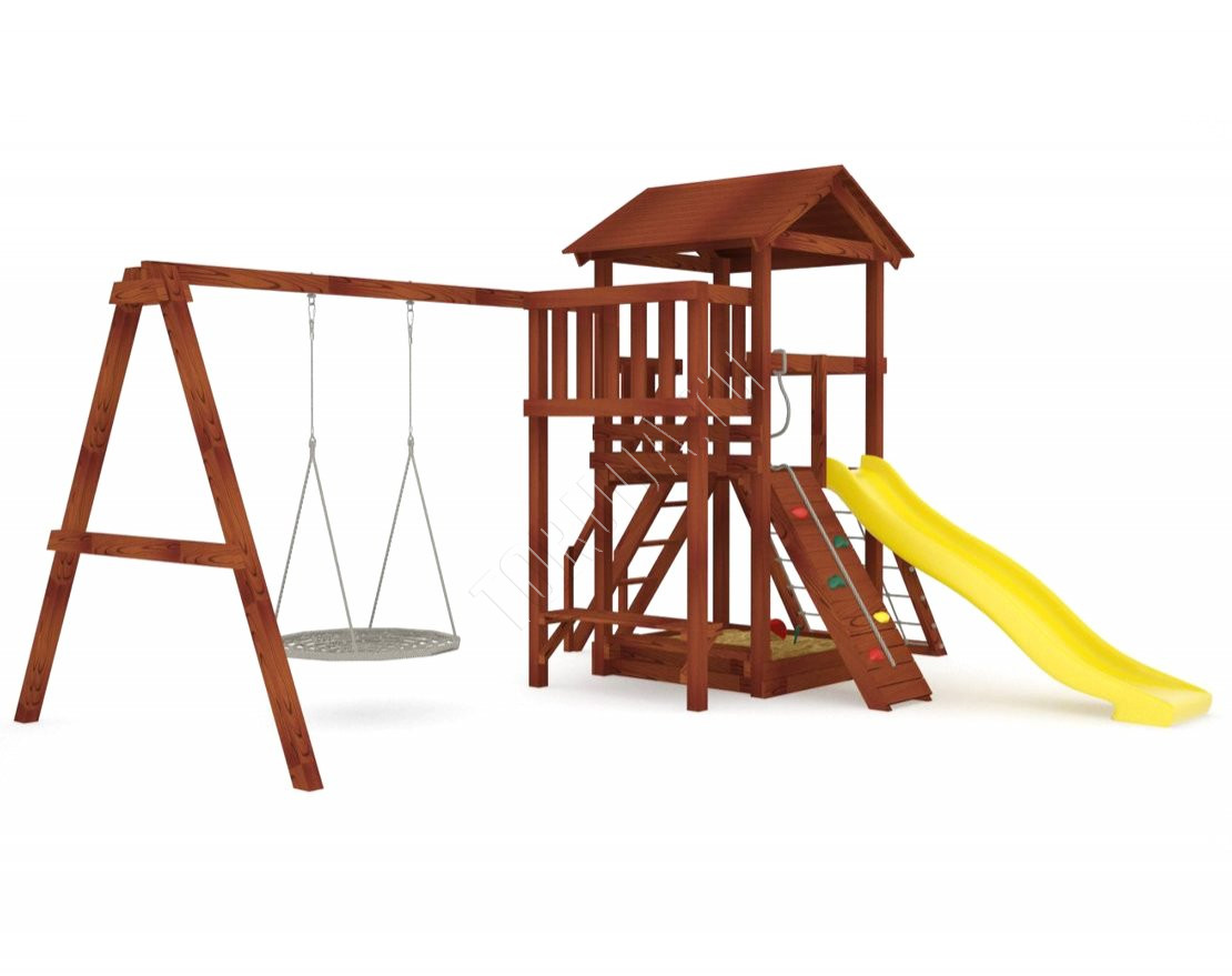 Он безопасен даже для малышей – все крепежи скрыты под заглушками, металлические детали покрыты порошковой краской, а навесное оборудование произведено специально для детей в Бельгии. Конструкция, качество дерева и подвесные атрибуты соответствуют ГОСТ.