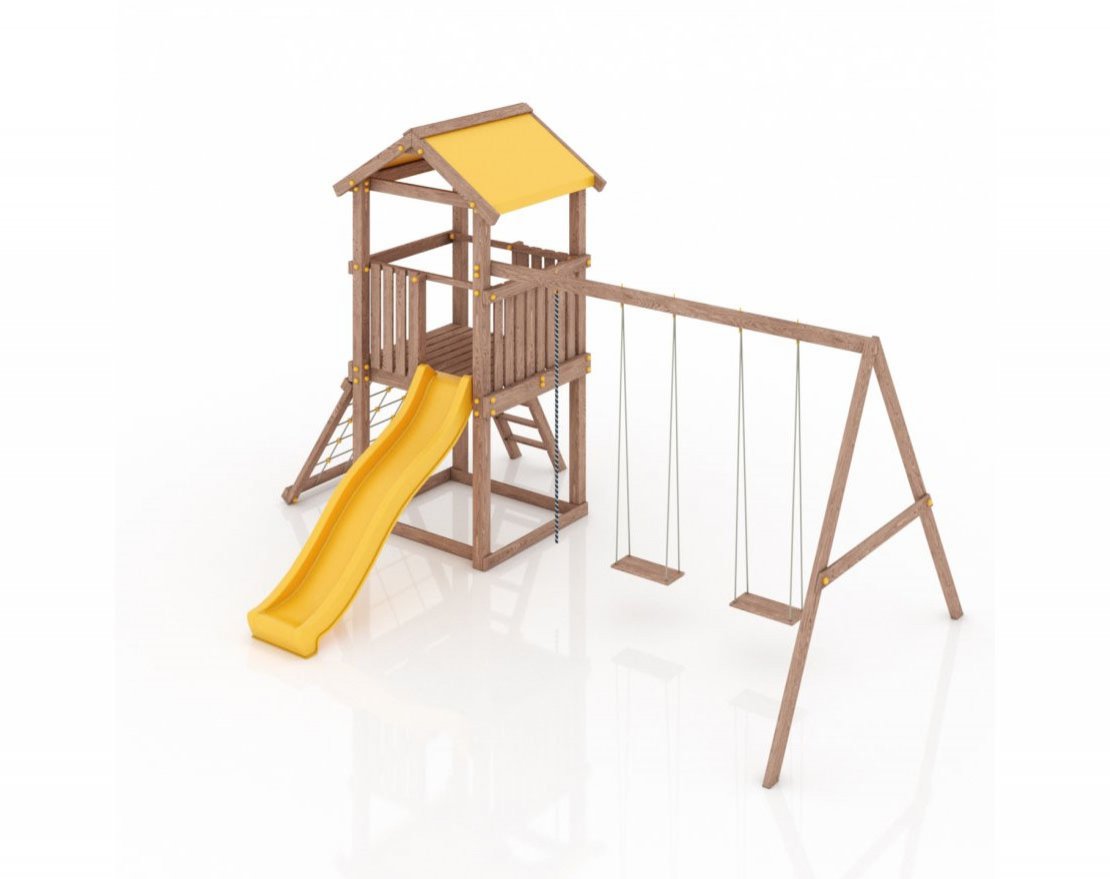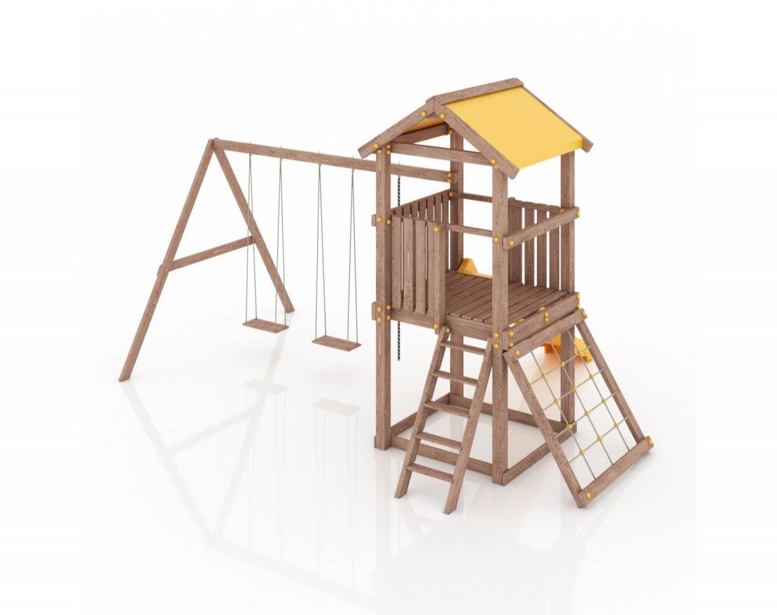 Комплектуется качелями и скалодромом либо "паутинкой" на выбор. Скалодром помимо физических нагрузок заставляет ребёнка активировать стратегическое мышление, думать над своим следующим шагом. В данной конфигурации в стоимость включен веревочный скалодром или "паутинка" на выбор покупателя.