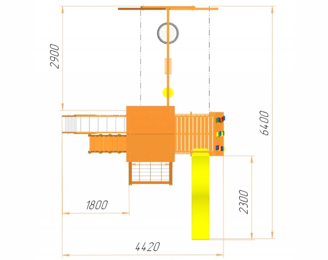 Крепежные элементы скрыты под пластиковыми колпачками. Исключается возможность травмирования детей на площадке.