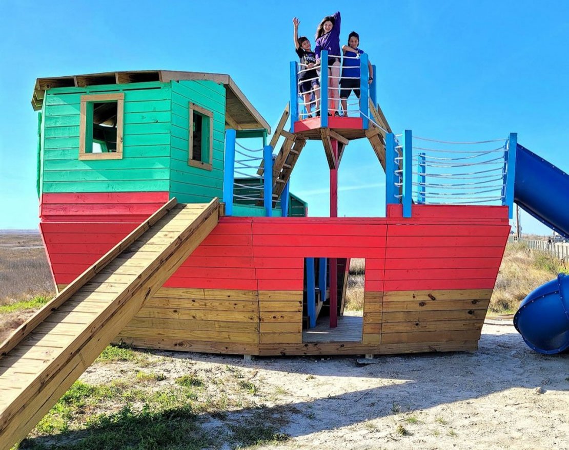 Воронье гнездо – это наблюдательный пост с 2 лесенками. Он соединяет нос и корму корабля. К мачте можно привязать флаг. На втором этаже установлены 2 люка для спуска и подъёма. Также есть обычная лестница, по которой можно безопасно подняться в верхнюю комнату. К корпусу комплекса крепится перекладина для подвесных качелей.