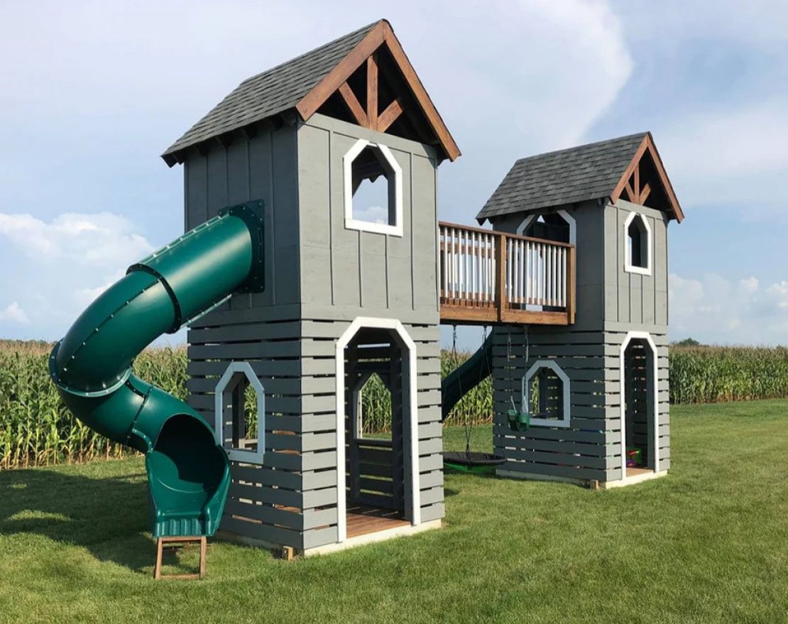 Состоящий из двух одинаковых башен, соединенных мостом, чтобы обеспечить детям собственное пространство, когда им не хочется делиться.