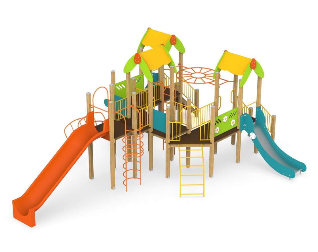 Детский игровой комплекс предназначен для организации детского досуга и физического развития на детских площадках, в детских садах, школах, парках, дворах и местах отдыха. Изделие представляет собой сборно-разборную конструкцию с декорациями из фанеры ФСФ, с повышенными свойствами по водо - и износостойкости.