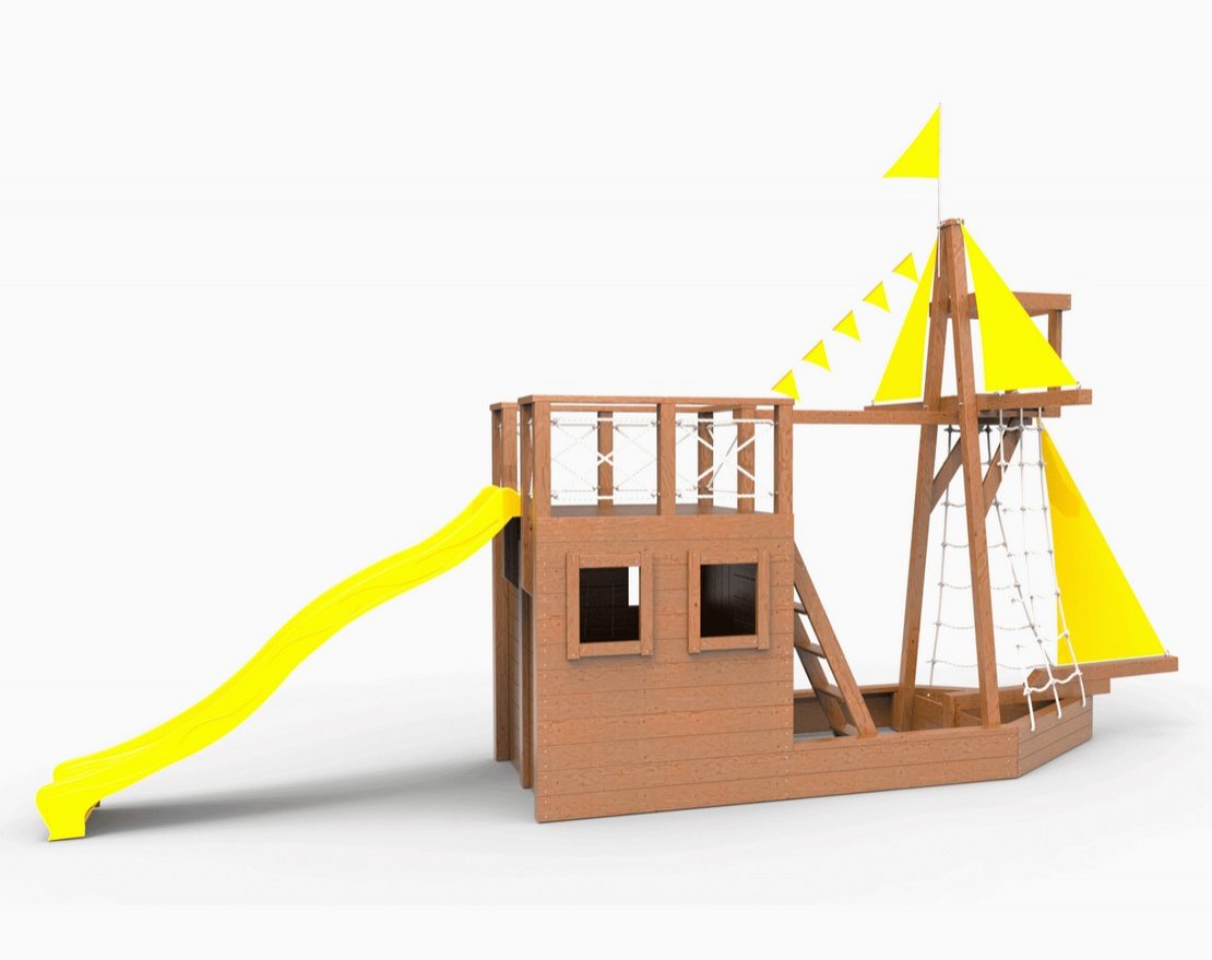 Ограничители не входят в комплектацию (только к канату). Навесное оборудование привязывается свободными концами.
