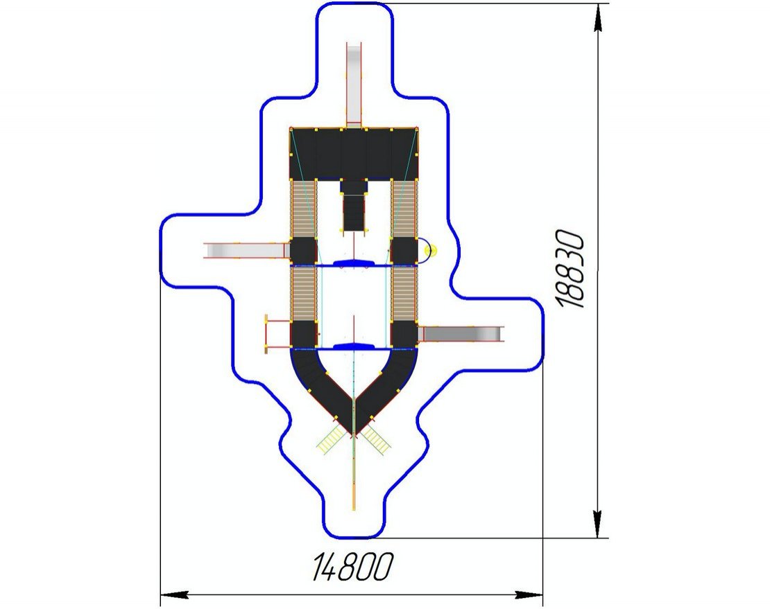 • Занимаемая площадь с учетом зон безопасности и приземления: 18830 × 14800 мм