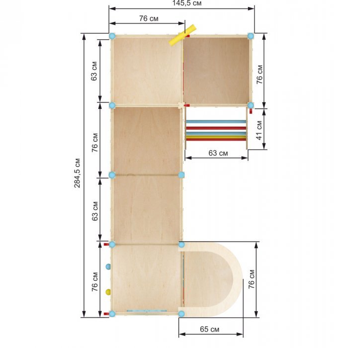 Сборка происходит по принципу конструктора с применением необходимых крепёжных деталей.