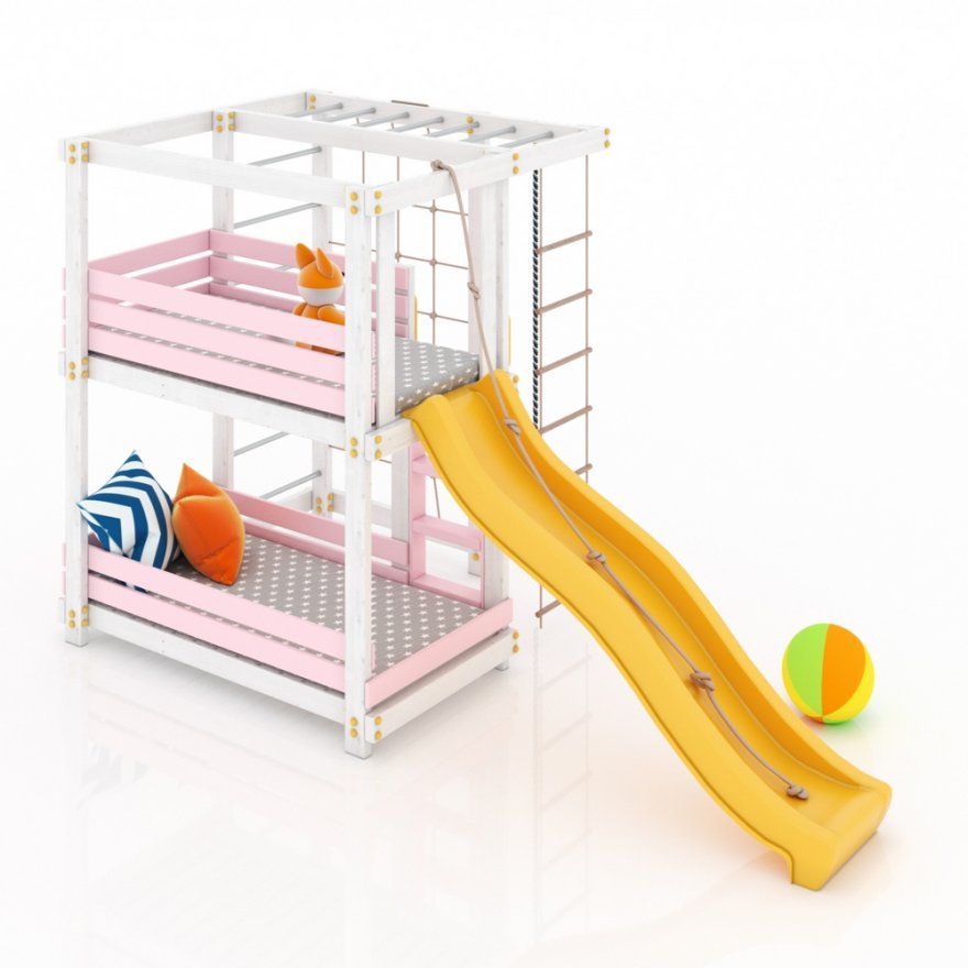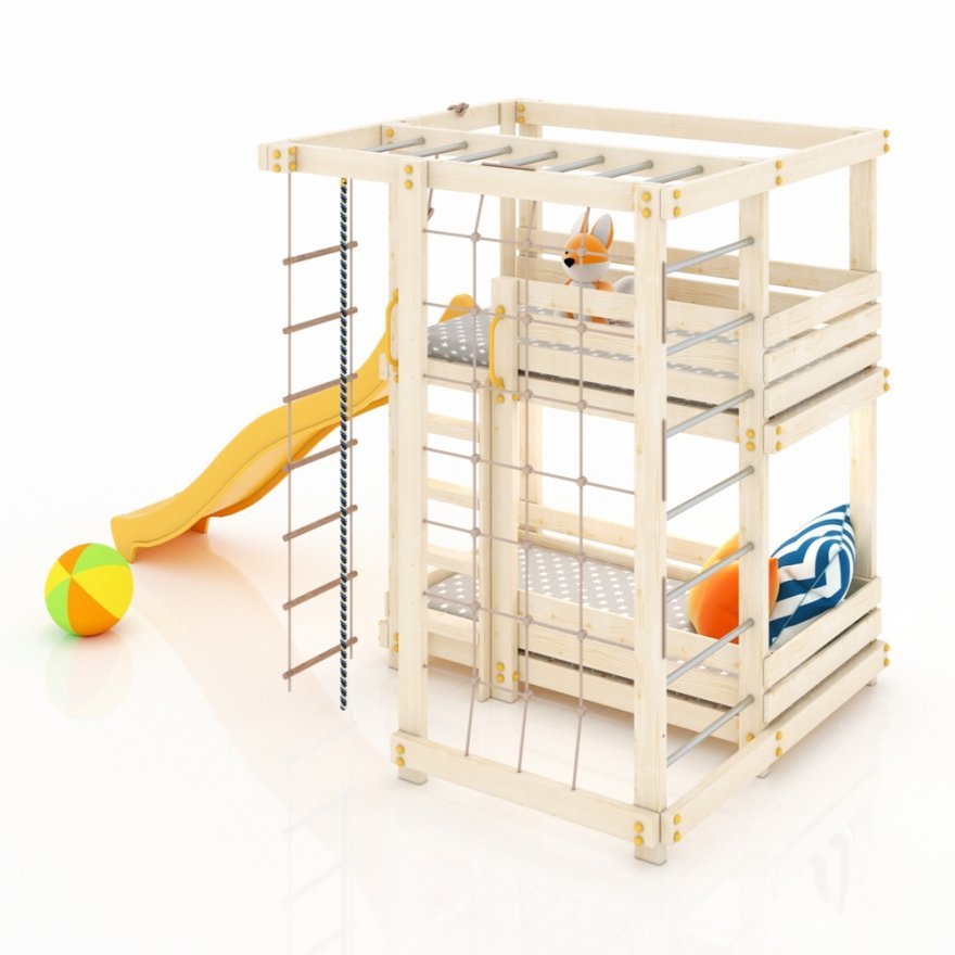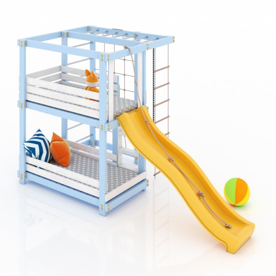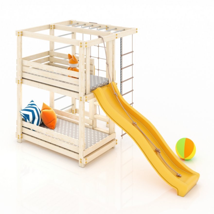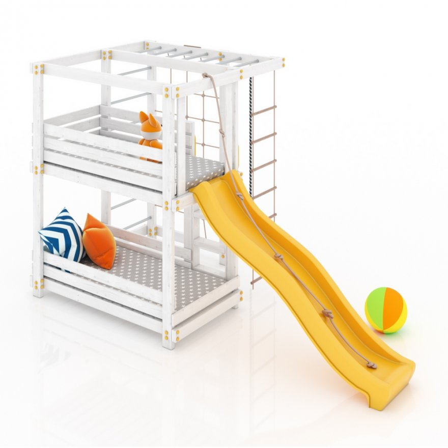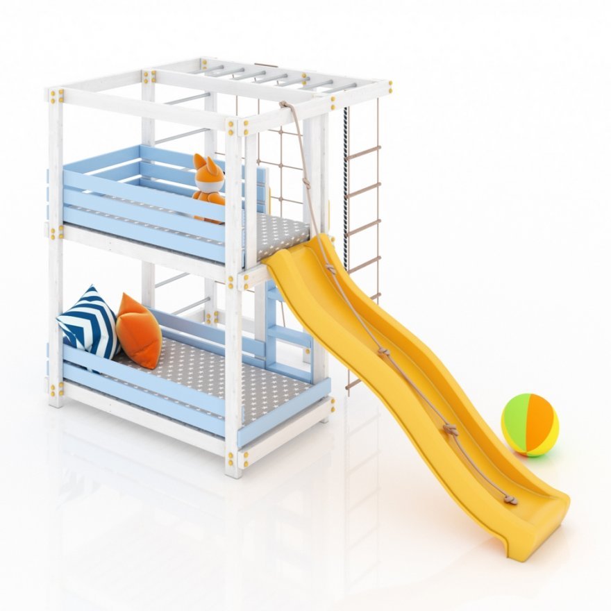 - Горка - скат пластиковый длиной 2,2 м, над скатом можно подвесить веревку для лазанья - идет в комплекте