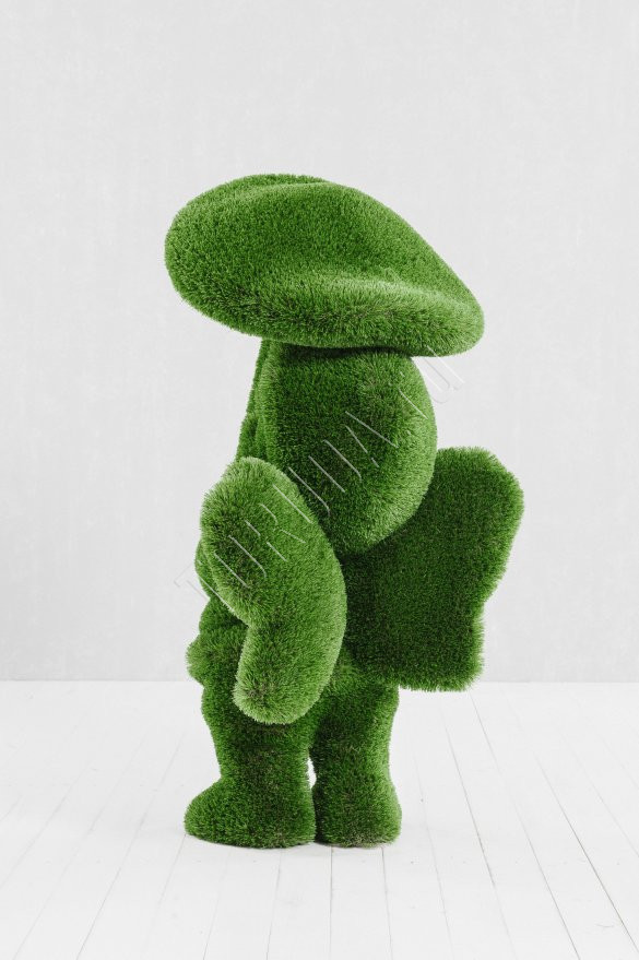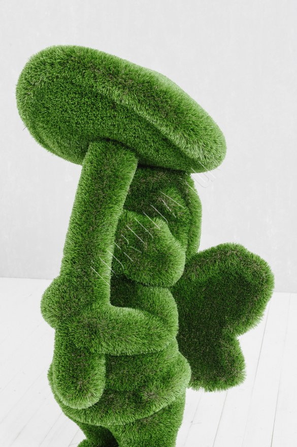Объемная зеленая фигура топиари девочка с грибом является современным трендом в украшении ландшафтного дизайна, выглядит мягкой и пушистой приятна на ощупь, нравятся всем без исключения взрослым и детям, а так же эти зеленые скульптуры являются постоянными участниками селфи и оригинальных фотосессий. Зеленая фигура девочки с грибом имеет легкий вес, и в случае необходимости садовую фигуру можно самостоятельно перемещать на другой объект.