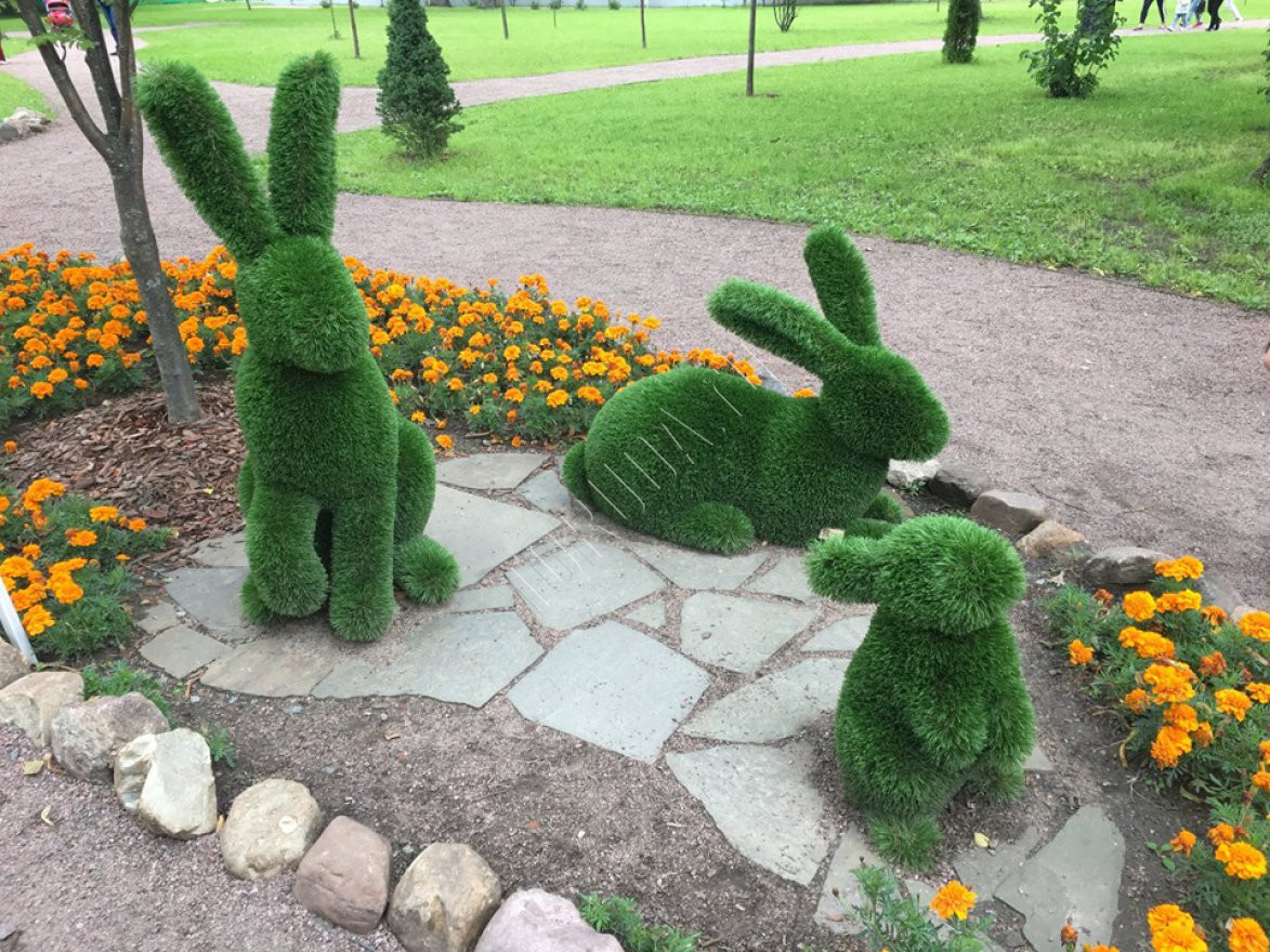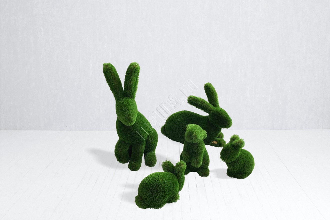 Объемная садовая фигура кролик приспособлена к различным погодным условиям, не гниет и не преет, устойчива к солнечному излучению, не прихотлива в уходе, не требует полива и стрижки надолго, сохраняет первозданный вид, оставаясь вечно зеленой и зимой и летом.