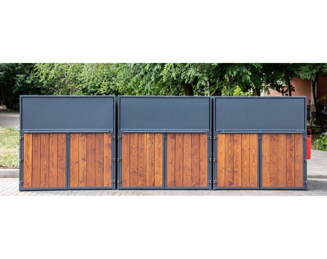 В данный контейнерный шкаф вмещается один большой контейнер объемом 1100 л. Либо один стандартный контейнер на 600-800 л, либо два контейнера до 360 литров.