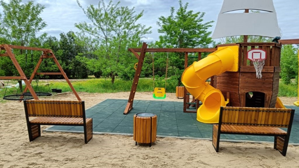 Деревянные элементы обработаны современными лакокрасочными материалами, в том числе покрыты тонировочным составом с антисептиком, что обеспечивает устойчивость к атмосферным осадкам, перепадам температур и образованию плесени.