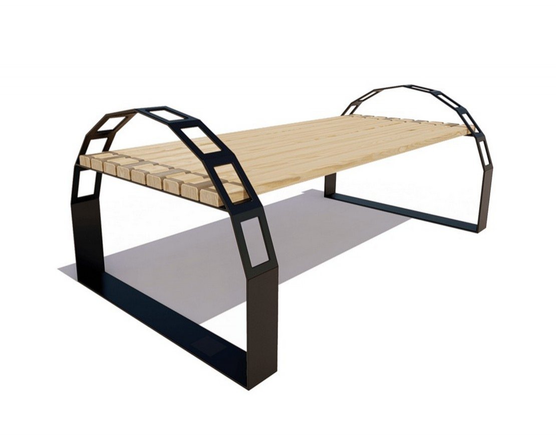 Каркас лавочки изготовлен из профилированной трубы прямоугольного сечения. Конструкция прочная и устойчивая, выдерживает большой вес, стойкая к физическому воздействию.