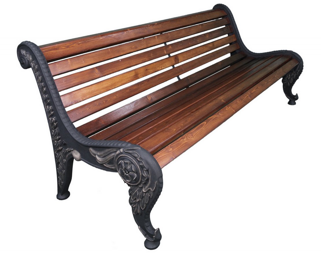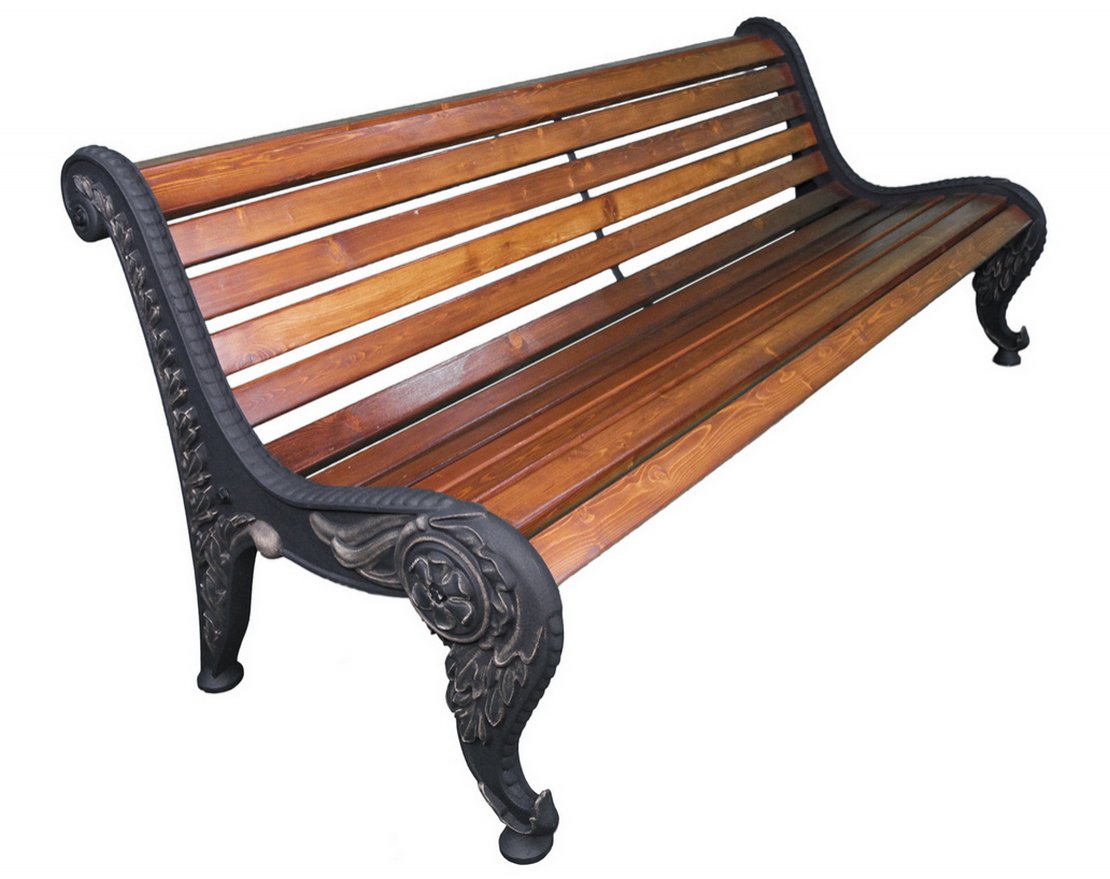Скамейка Астра отличается продуманным дизайном, плавностью линий, надежностью и долговечностью. Устойчивость конструкции обеспечивают массивные опоры из художественного чугунного литья. Сиденье и спинка выполнены из ангарской сосны, обработанной современными лакокрасочными материалами. Плавный переход от сиденья к спинке обеспечивает сидящим максимальный комфорт.