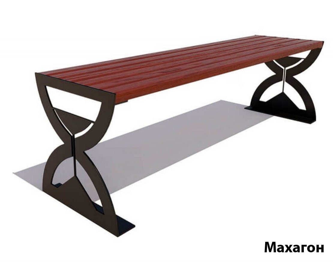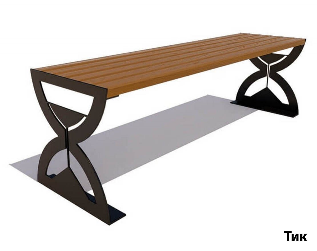 Сидение обустроено из бруса. Деревянные элементы обрабатываются защитными составами. Опоры получены методом художественной лазерной резки по стали.
