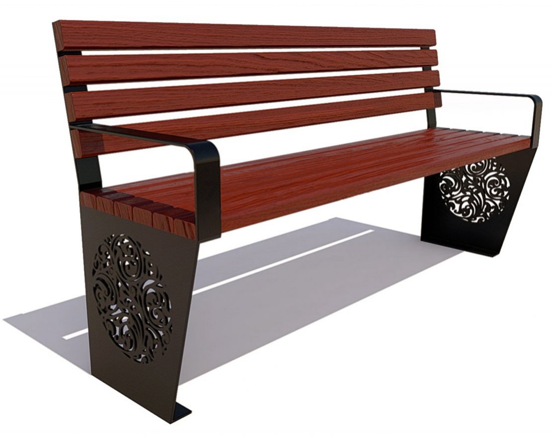 Каркас выполнен из листовой стали с применением лазерной резки. Покрыт порошковой полимерной краской. Стандартный цвет по умолчанию – черный муар. Возможность выбора цвета по шкале RAL. Сиденье и спинка: Брус из хвойных пород древесины, обработан экологичными инновационными лакокрасочными материалами, что подтверждает Свидетельство ЕвАзЭС. Стандартный цвет по умолчанию – палисандр. Возможность выбора цвета из палитры.