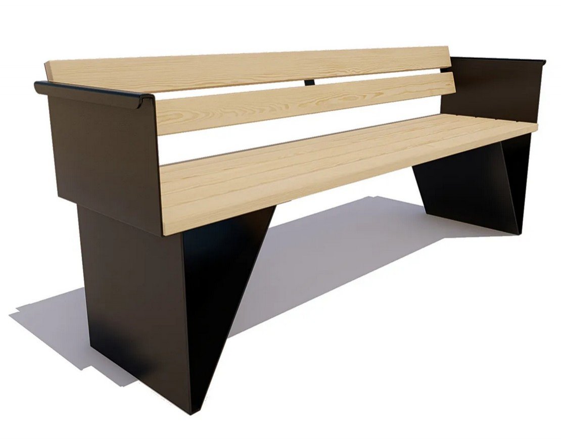 Каркас выполнен из листовой стали, выкрашен специальной порошковой эмалью. Размер изделия 2000 мм. Сиденье и спинка изготовлены из хвойных пород деревьев. Можно выбрать цвет из представленной палитры.