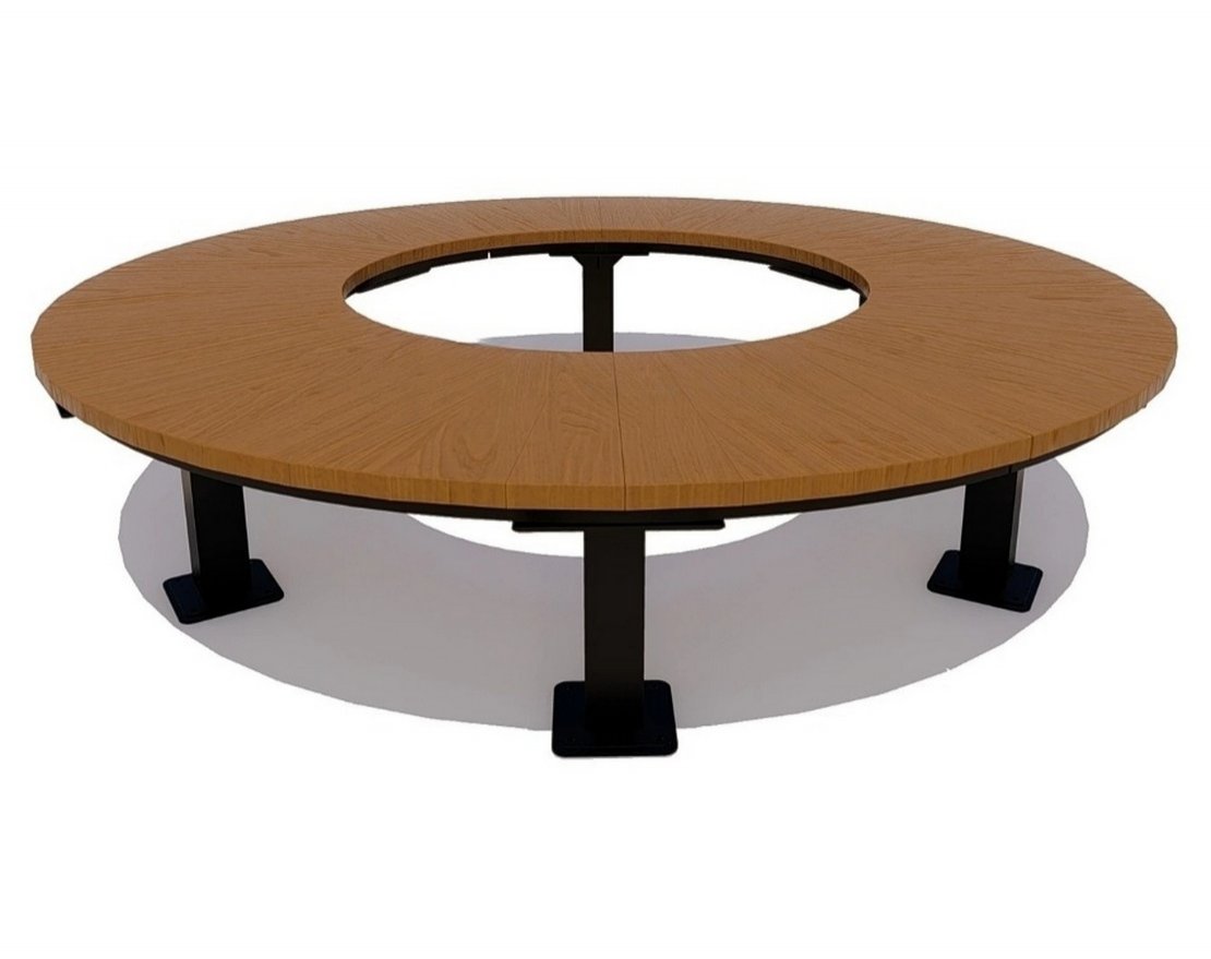 «Смоленск» — необычная скамейка из натурального дерева с эффектной тонировкой. Модель сочетает оригинальный дизайн с практичностью и вместительностью. Опоры конструкции стальные, окрашены методом порошкового напыления. При необходимости их можно зафиксировать на грунте анкерными болтами. Сиденье нестандартной круговой формы составлено из брусьев. Ширина его составляет 500 мм, что способствует комфорту сидящих.