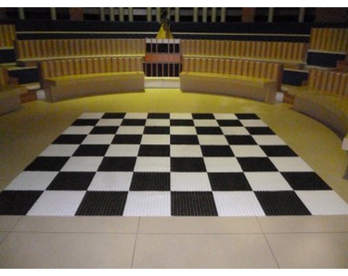Большая шахматная доска для улицы 3.2х3.2м собирается из 32 черных и 32 белых клеток размером 40х40 см. Клетки имеют очень крепкое сцепление друг с другом, поэтому не рекомендуется часто собирать и разбирать данную шахматную доску.