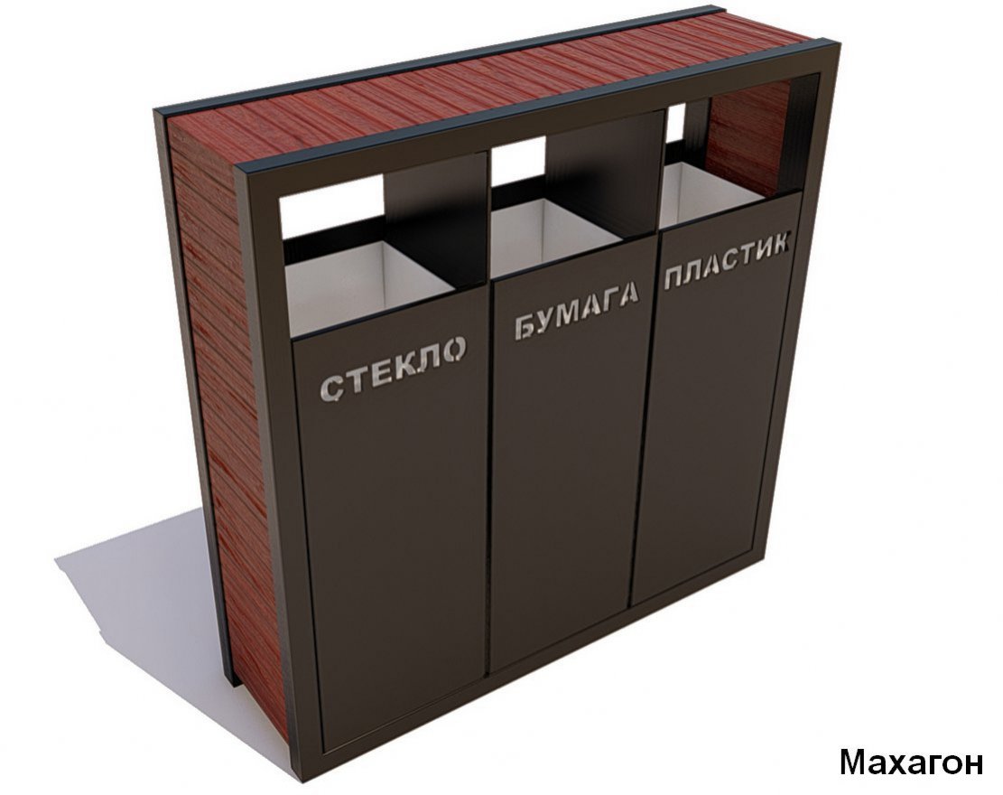 Урны для раздельного сбора мусора — идеальное решение при создании современной городской среды, где люди заботятся об экологии и будущем планеты. Основа конструкции выполнена из листовой стали с прочным лакокрасочным покрытием, устойчивым к уличной эксплуатации. Верхняя часть корпуса изготовлена из натурального дерева, обработанного защитной пропиткой и лаком. Урна включает в себя 3 высоких контейнера квадратного сечения. Они предназначены для стекла, пластика и бумаги, о чем имеются соответствующие контрастные надписи. Модель популярна при благоустройстве парковых и лесопарковых зон, дворов, площадей, набережных.