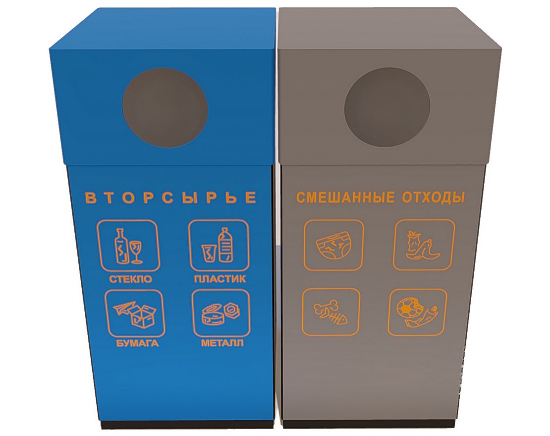 Урна «Мегаполис» обеспечивает разделение мусора в городских условиях. Отходы, предназначенные для вторичной переработки, стандартно помещаются в синюю секцию, смешанные — в серую.