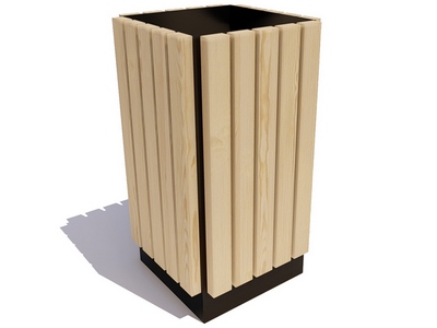Каркас урны «Вертикаль» выполнен из листовой стали с применением лазерной резки. Покрыт порошковой полимерной краской. Стандартный цвет по умолчанию – чёрный муар. Есть возможность выбора цвета по шкале RAL.