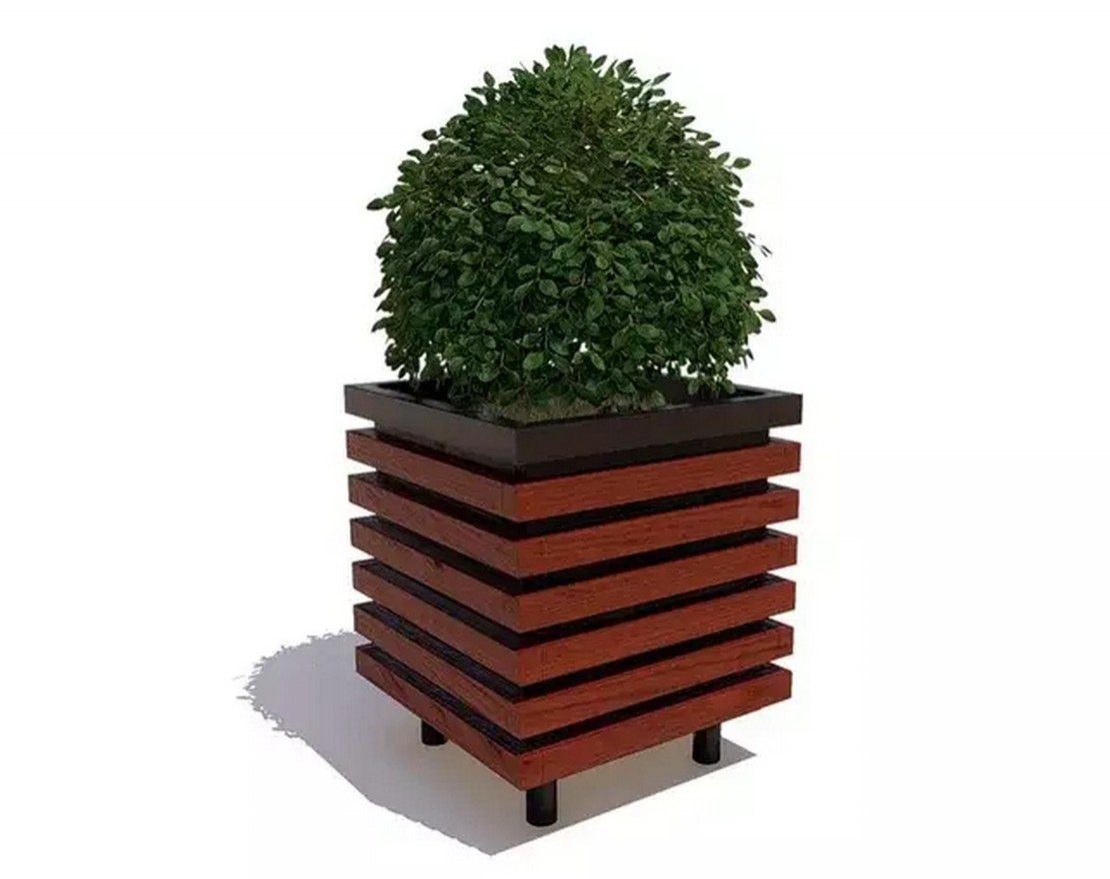 Деревянные вазоны «Аллея» — компактные кубические конструкции для украшения ландшафта. Брусья могут служить опорами для вьющихся растений или ручками при транспортировке. Уникальный брус отличается особенной степенью прочности. Основой служит надежная металлическая емкость с полимерным слоем краски. Дуэт стали с натуральным деревом подойдет любителям экологичности и уюта.