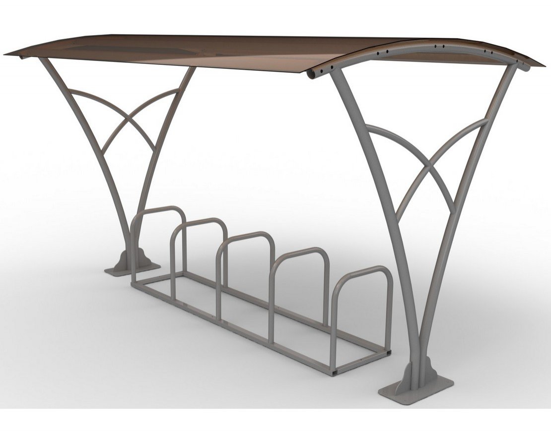 Велопарковка с навесом "Фонарь" устанавливается в парках, зонах отдыха, у торговых центров, офисных зданий и других городских локаций. Обеспечивает упорядоченное размещение как вело-транспорта, так и самокатов, защищая от осадков и ультрафиолета.