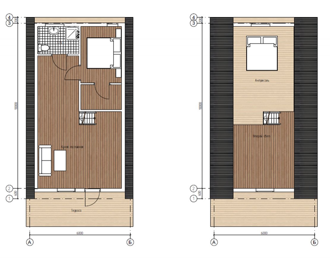 Для А-Фрейма с аттиковой стеной доступен 2 этаж (+10% к стоимости).