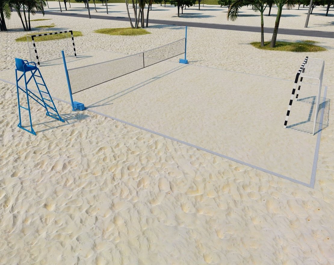 Пляжный комплект Торуда P-1 - идеальное решение для активного отдыха на пляже! Этот комплект состоит из футбольных ворот, волейбольных стоек и судейской вышки, что позволяет насладиться игрой в пляжный футбол и волейбол прямо на берегу у воды.