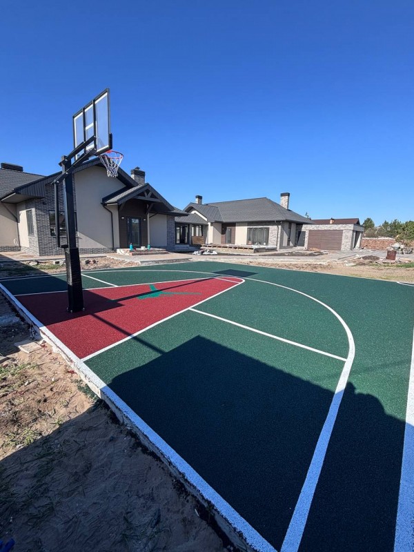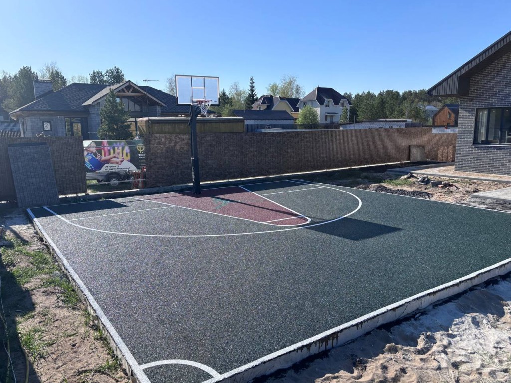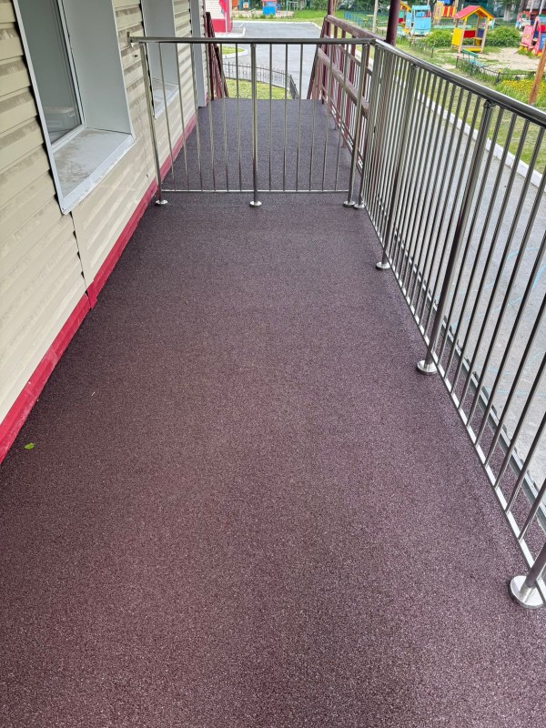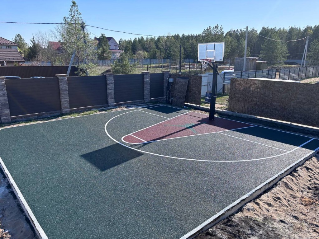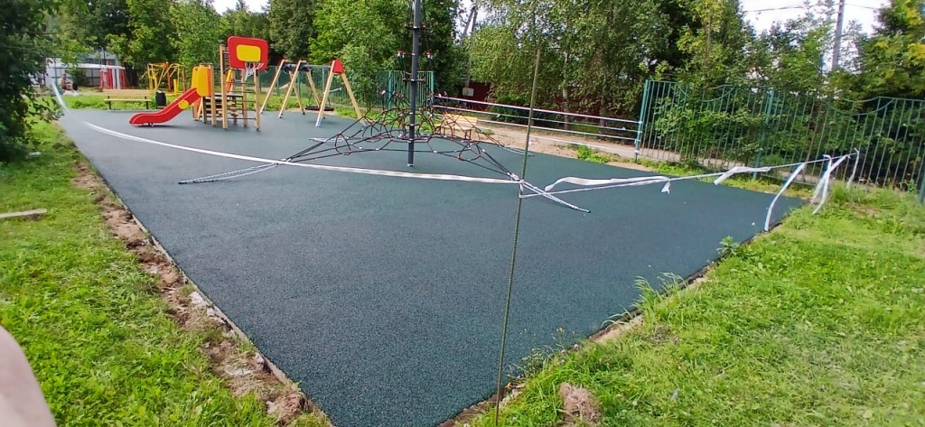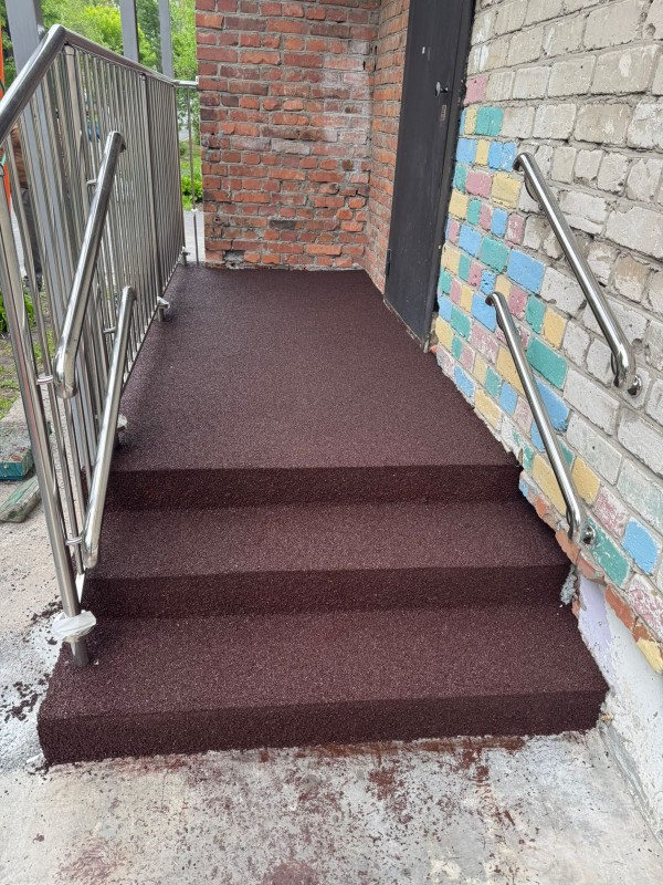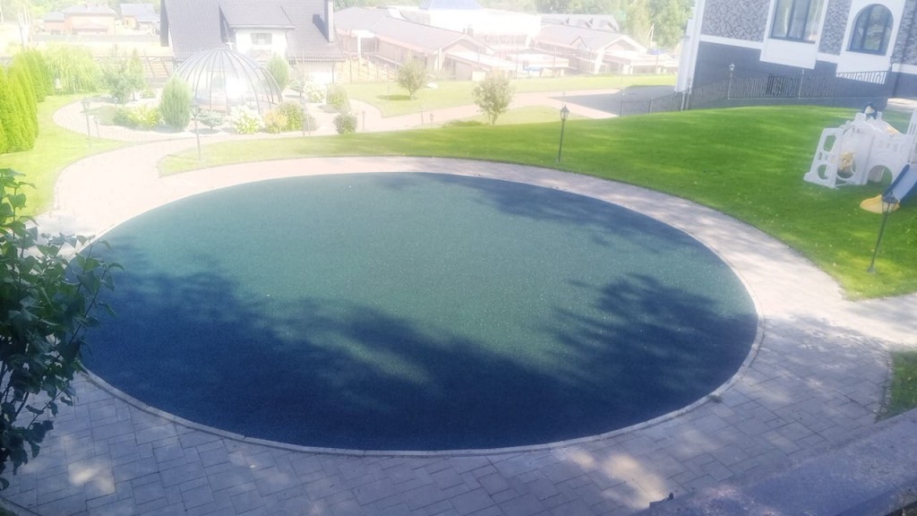Состав: резиновая крошка фракции 3 мм черного цвета, полиуретановый клей, пигмент.