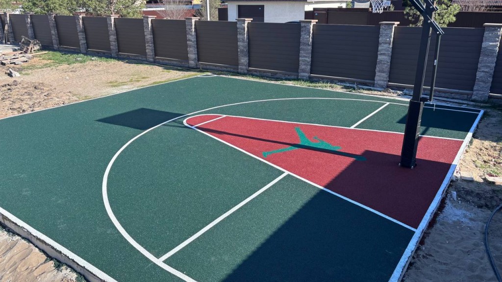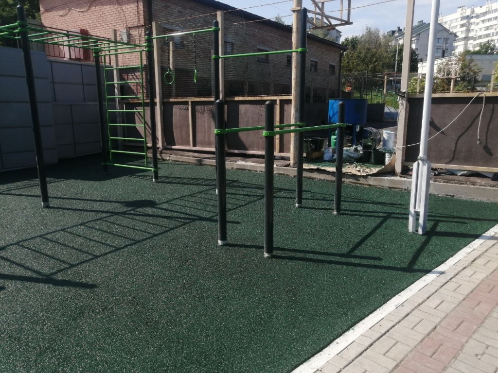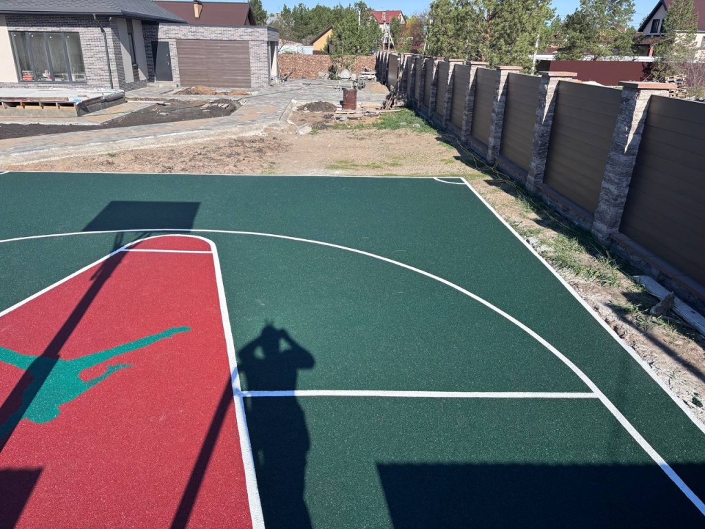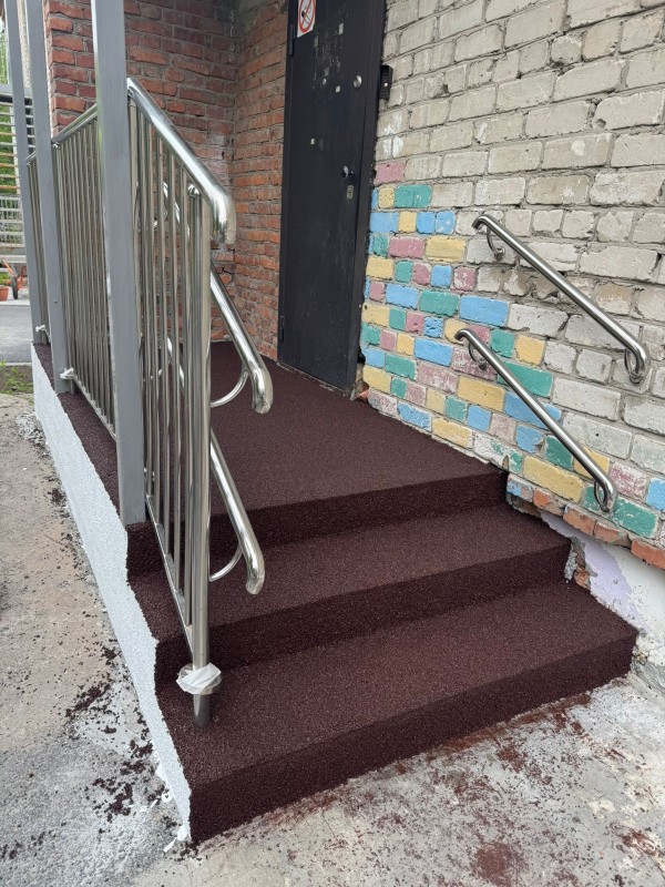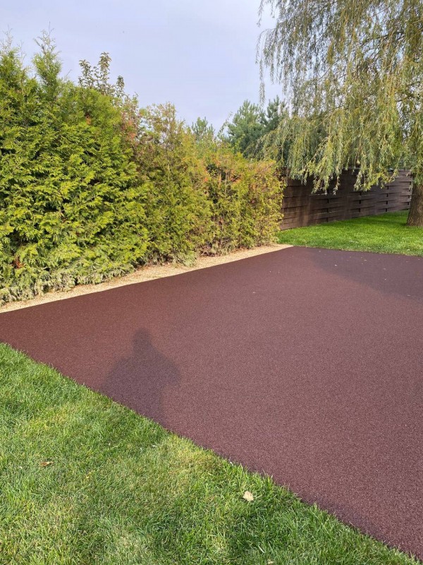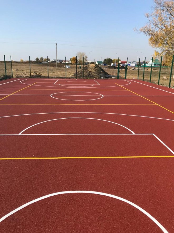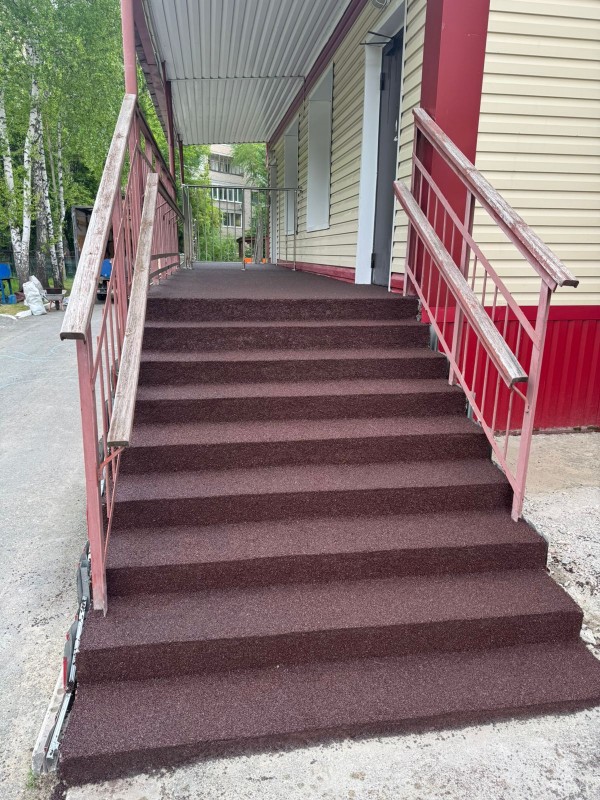 Состав: резиновая крошка фракции 3 мм черного цвета, полиуретановый клей, пигмент.