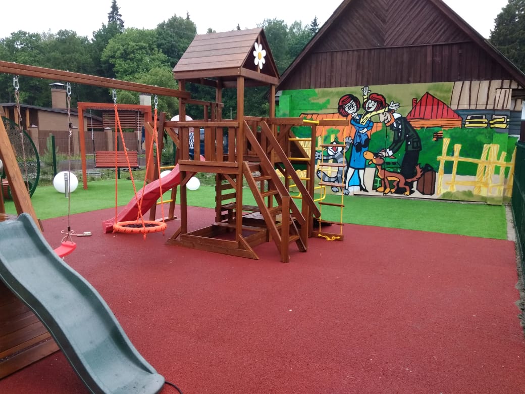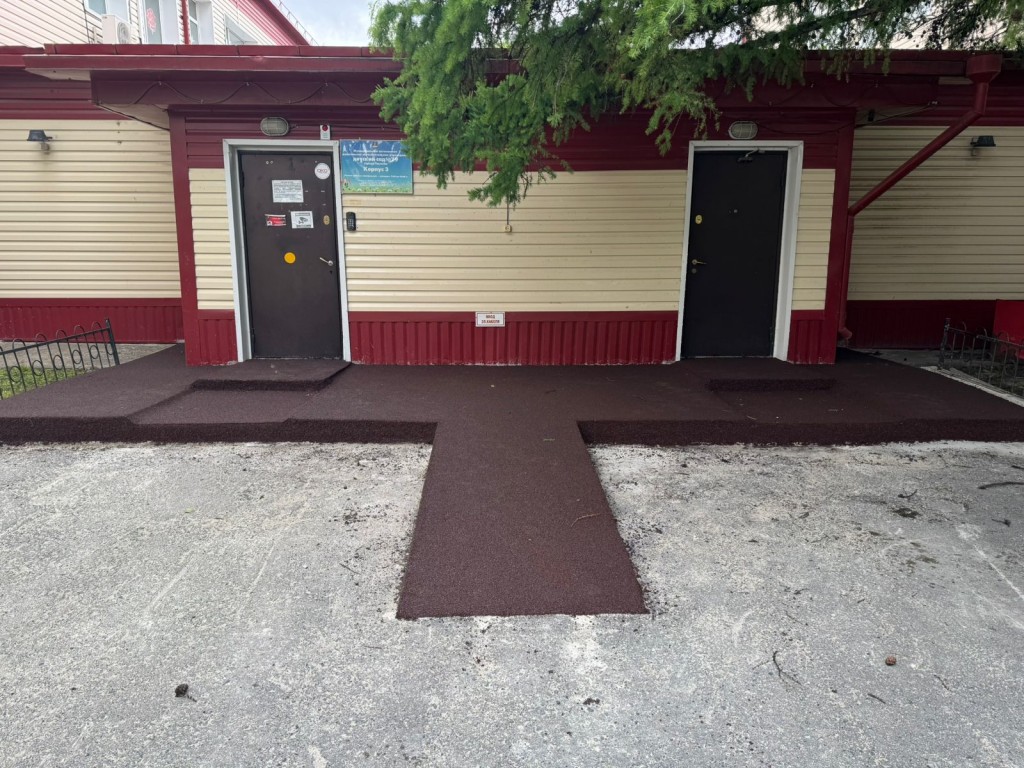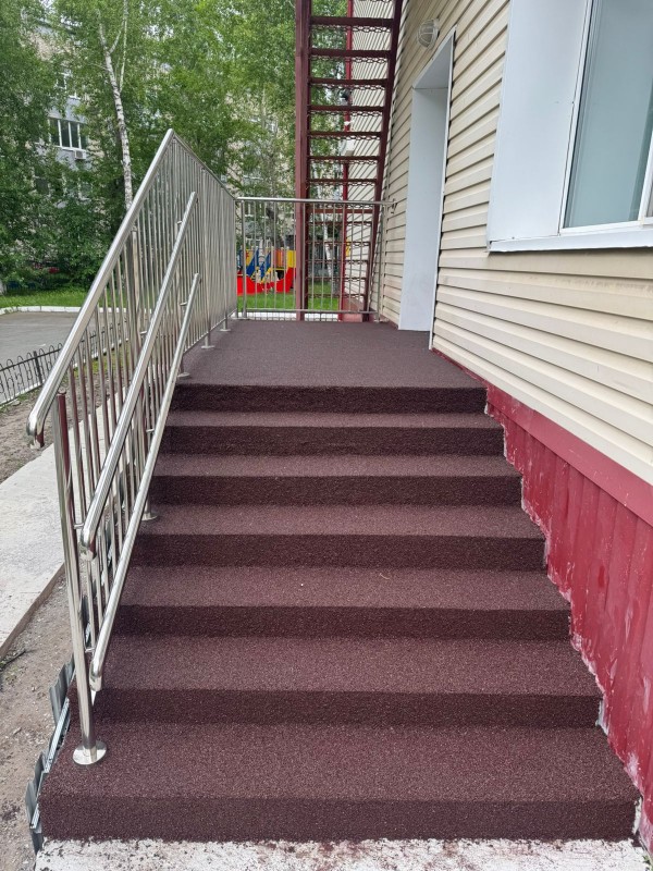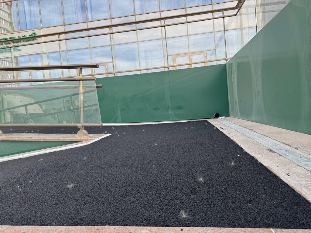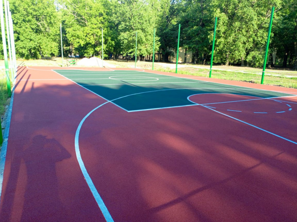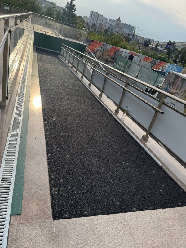 Состав: резиновая крошка фракции 3 мм черного цвета, полиуретановый клей, пигмент.