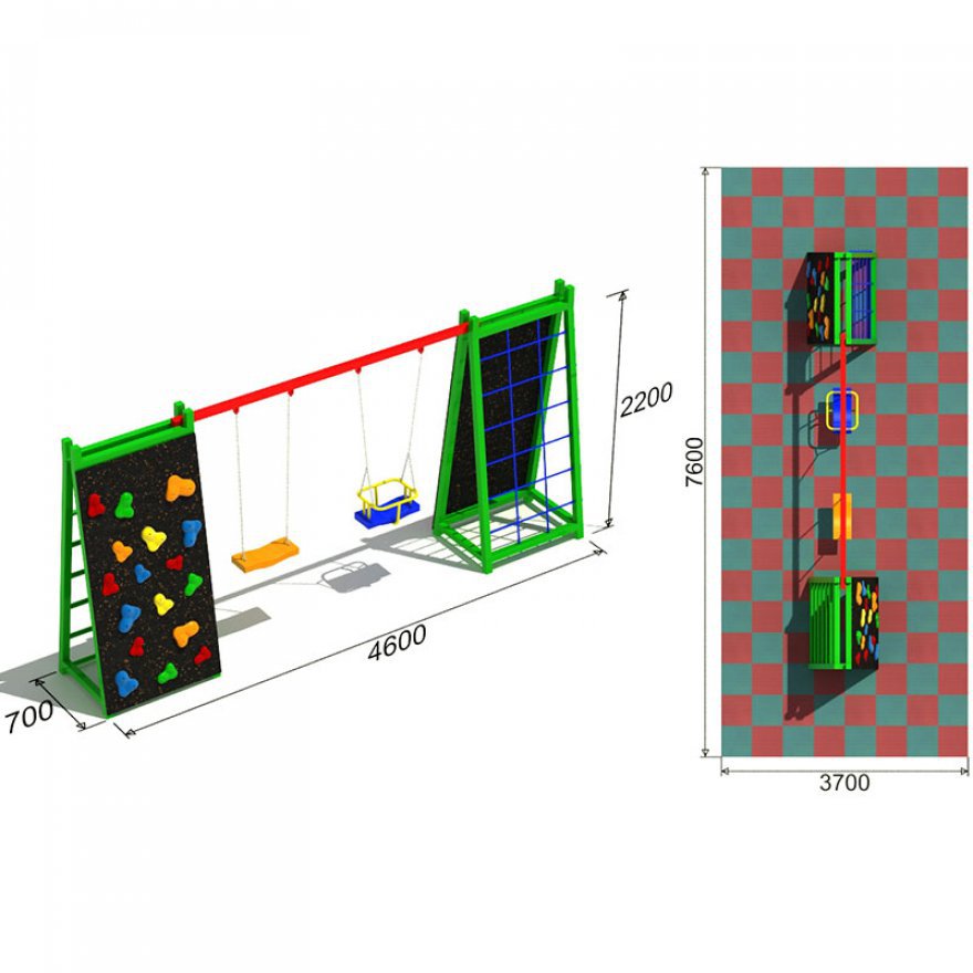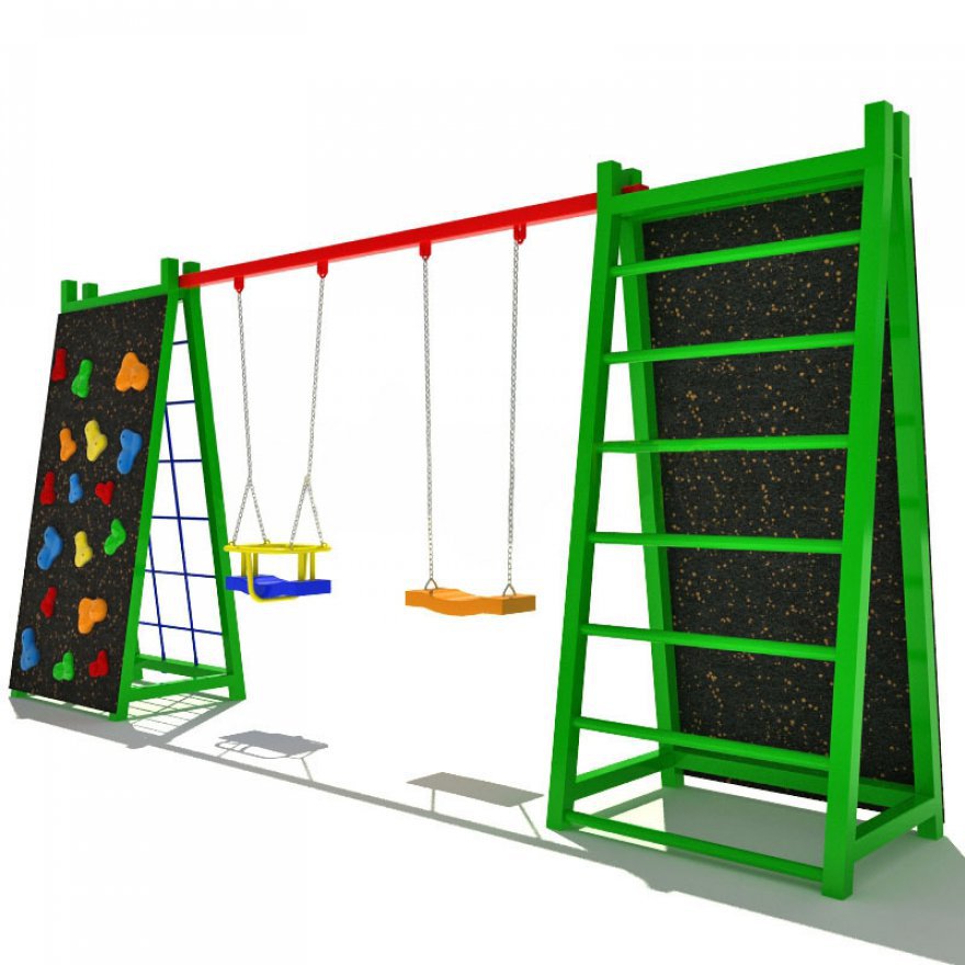 Детский спортивно-развлекательный комплекс сочетает в себе всё для весёлого и полезного времяпрепровождения. Две качели для детей, одна с защитой для самых маленьких, позволят всласть качаться и веселиться, две лестницы и стены для скалолазания станут отличным источником впечатлений и эмоций.
