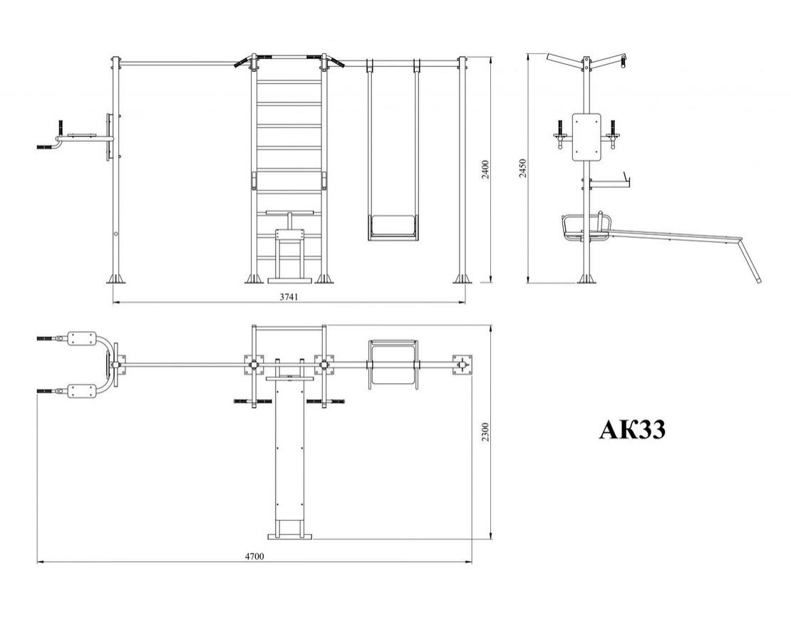 Атлетический комплекс АК33 помогает поддерживать хорошую физическую форму, прорабатывает все группы мышц: бицепсы, трицепсы, пресс, мышцы плечевого пояса, спины, груди и т.д. Компактный, подходит для малых территорий.