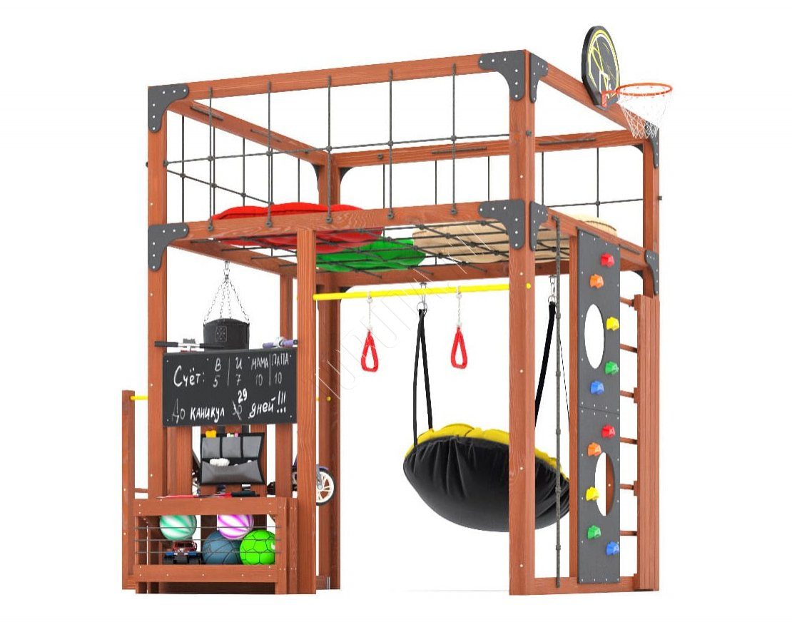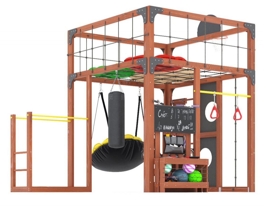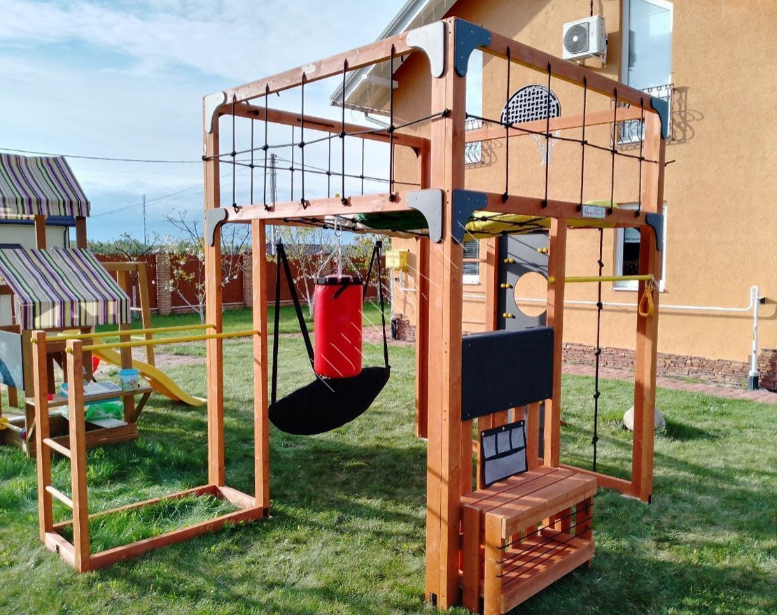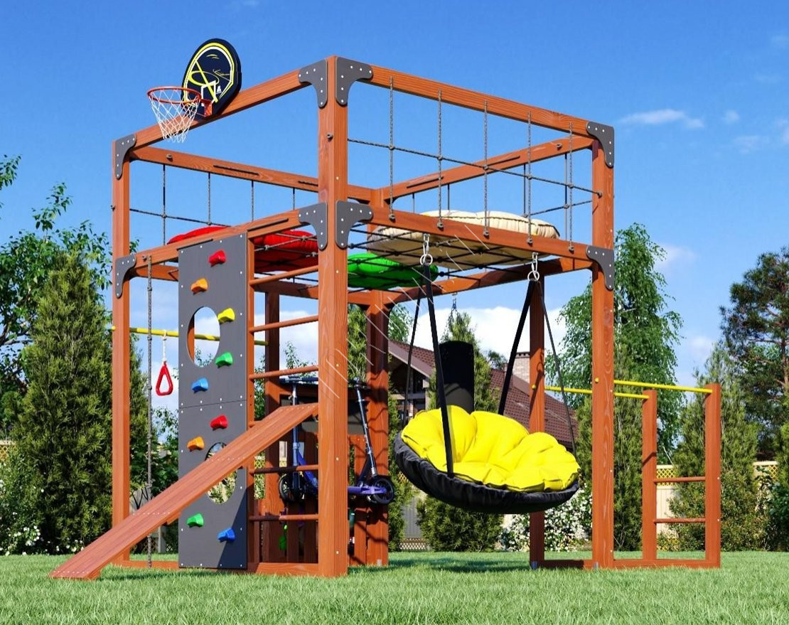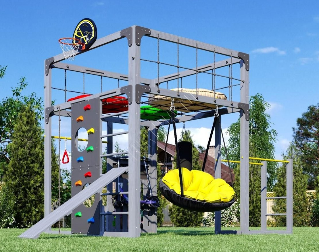 Этот многофункциональный комплекс сочетает в себе всё необходимое для активных игр, спортивных упражнений и уютного отдыха. Площадка органично впишется в любой двор, предоставив детям пространство для творческого и физического роста, а родителям – уверенность в безопасности и качестве.