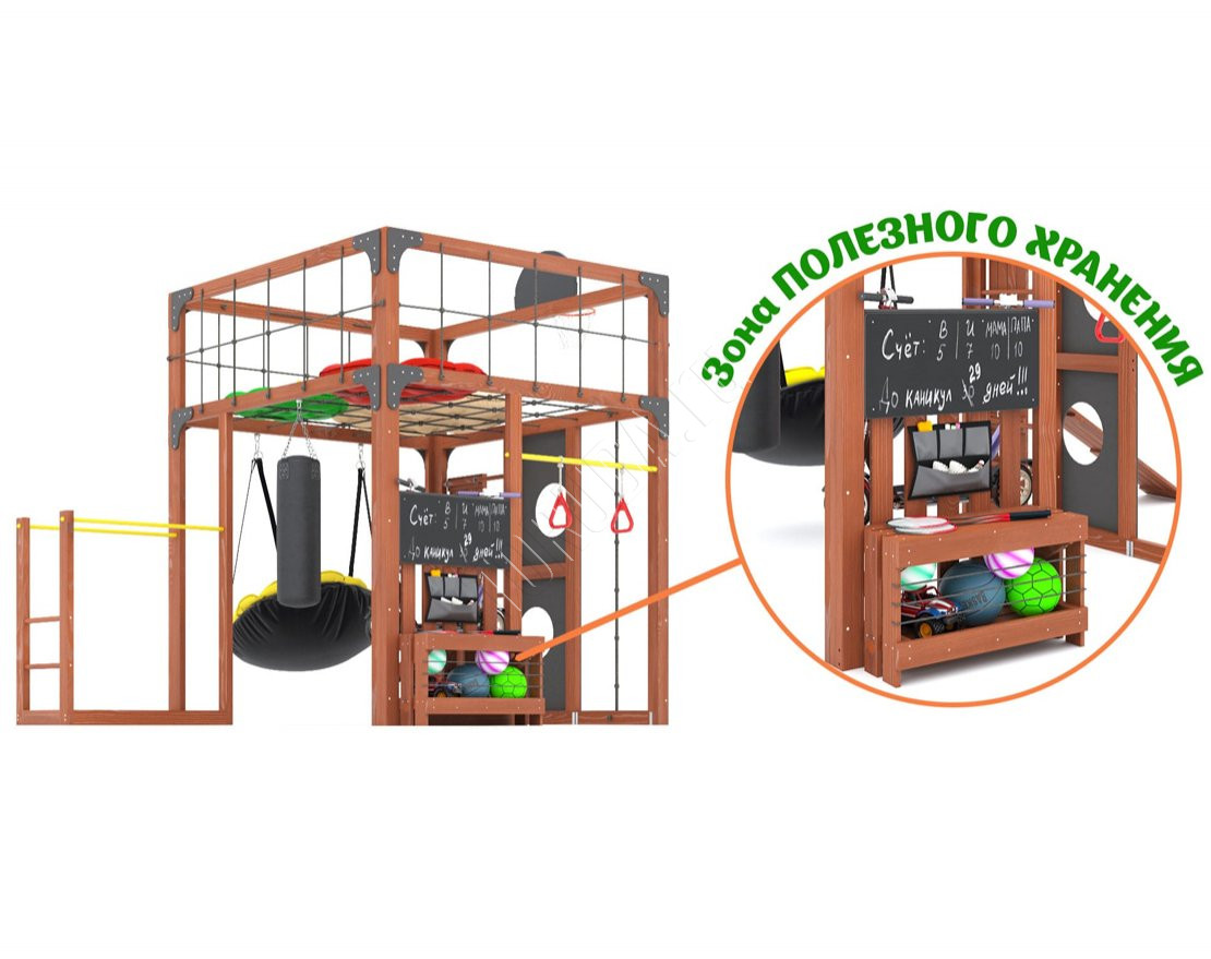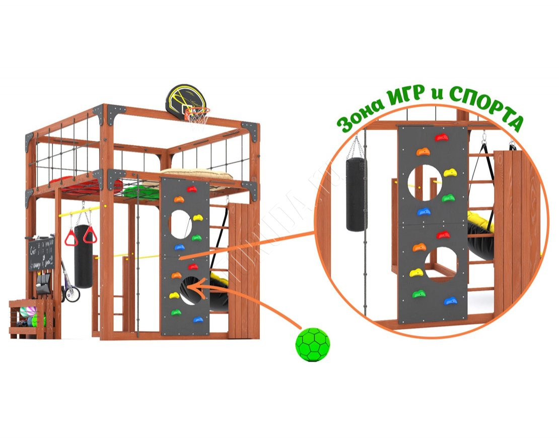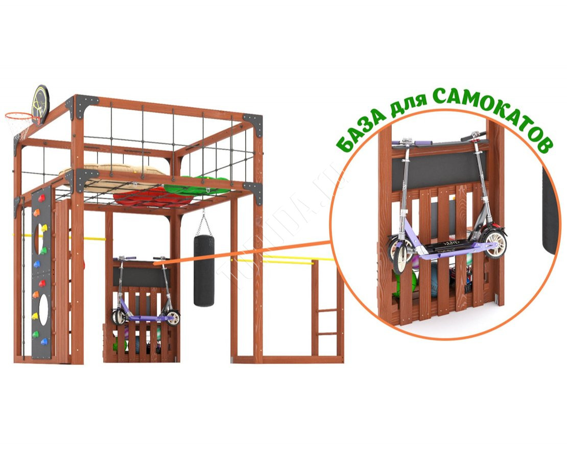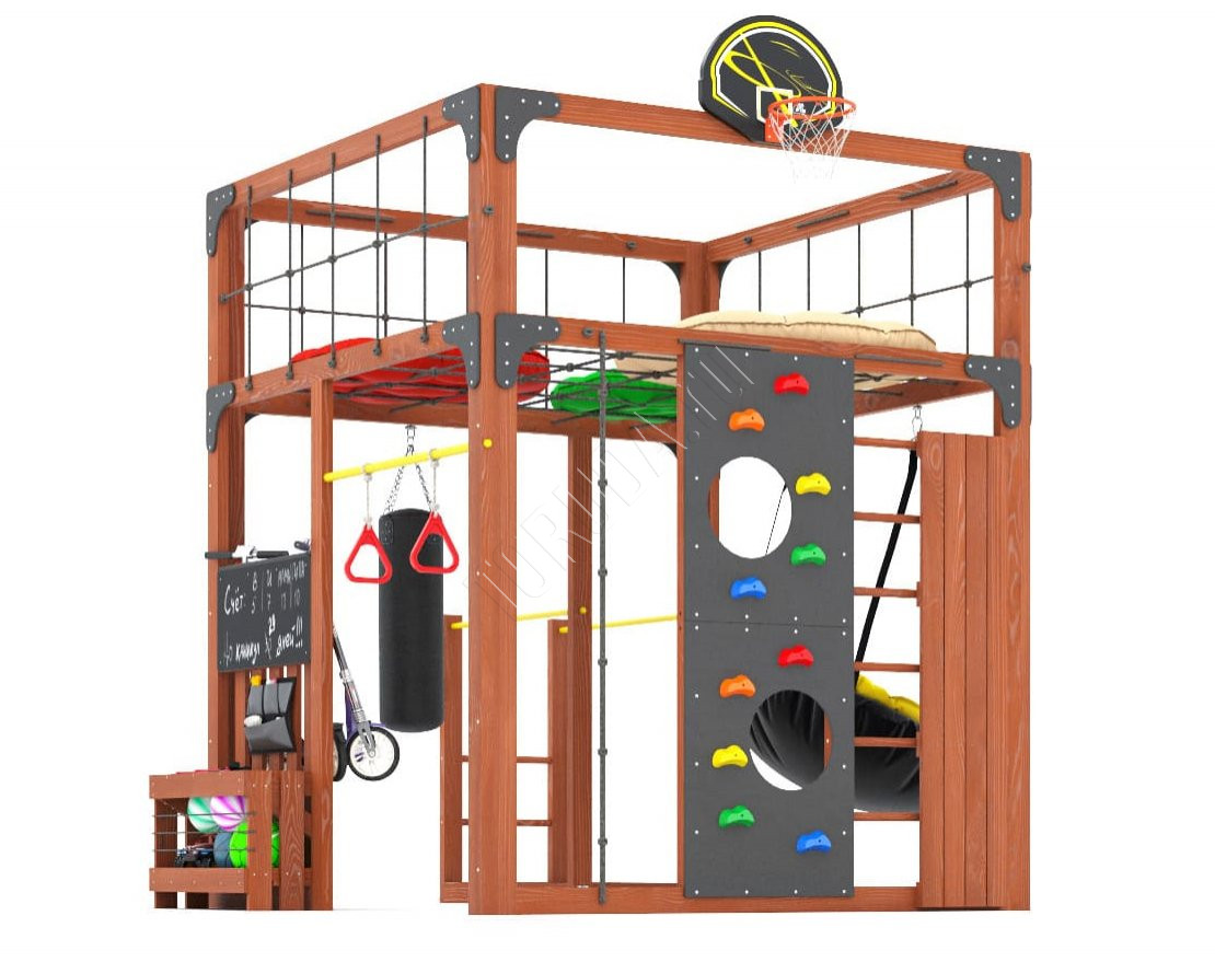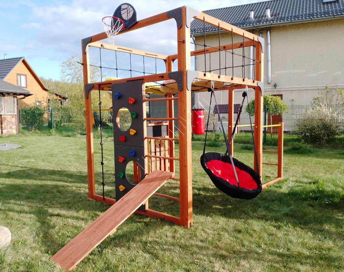Этот многофункциональный комплекс сочетает в себе всё необходимое для активных игр, спортивных упражнений и уютного отдыха. Площадка органично впишется в любой двор, предоставив детям пространство для творческого и физического роста, а родителям – уверенность в безопасности и качестве.