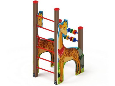 Борт выполнен из березовой фанеры толщиной 18 мм, габаритами 1800х1000. Фанера имеет тщательную обработку торцов и окраску желтого цвета. Стилизованы под жирафа.